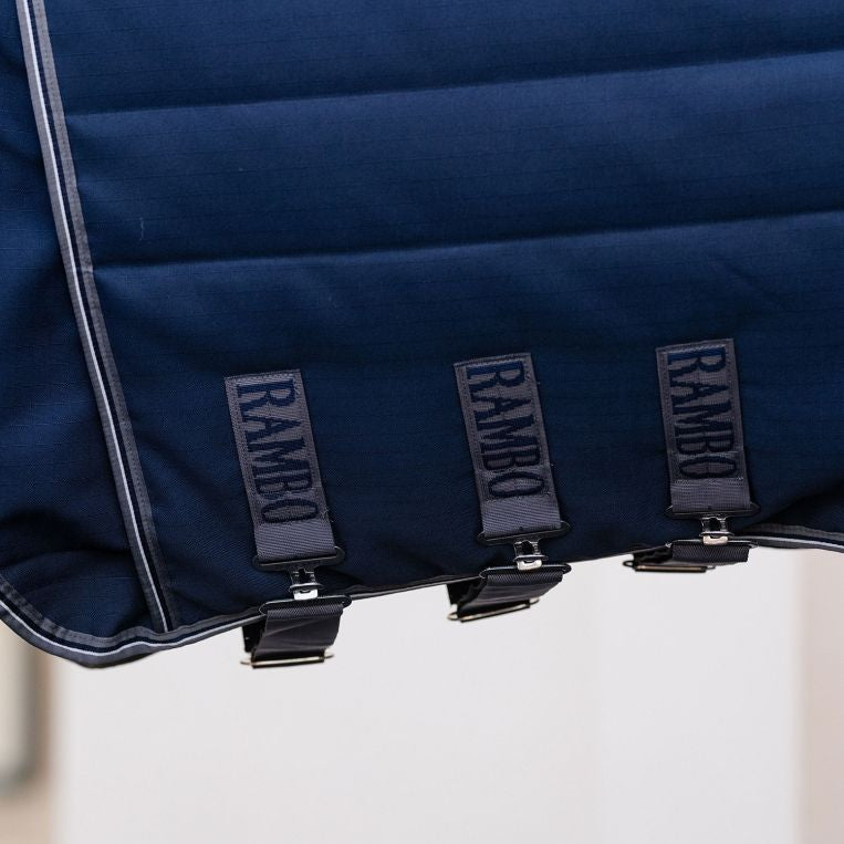Horseware Ireland Rambo Optimo 200g Plus Stable Rug - Navy/Thunderstorm Grey/Silver / 5'6 is backordered and will ship as soon as it is back in stock.