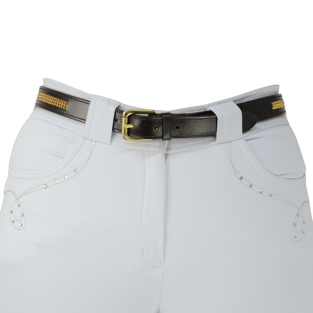 A stunning belt made from soft leather with 3 intricate rows of crystal diamantes. Looks amazing with competition breeches to add that hint of sparkle to your look.
