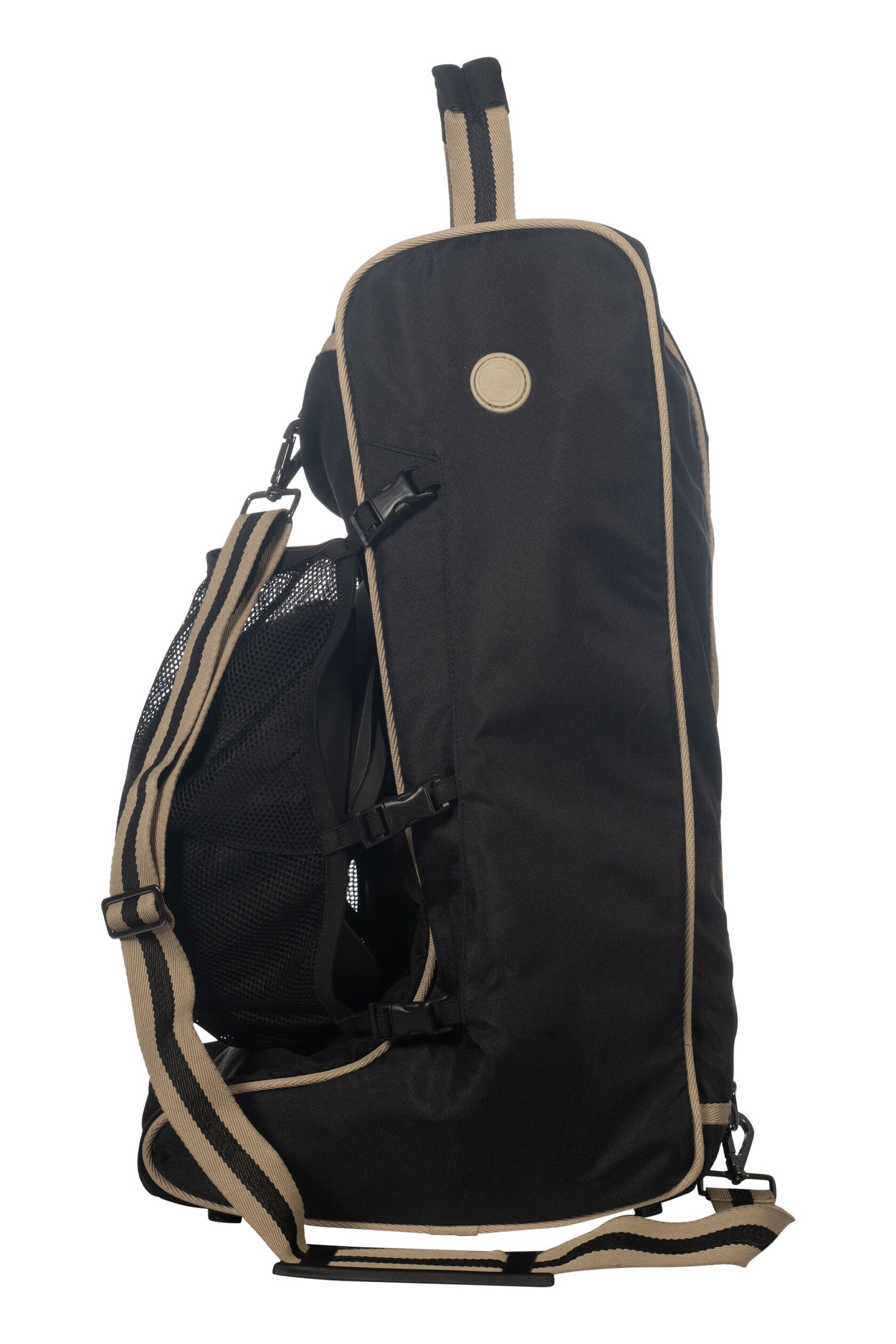 The HKM Boot Bag -Joules- is designed with a reinforced bottom for durability and a removable shoulder strap for convenient carrying. Its outside pocket provides extra storage space, while the handle makes it easy to transport. With an attachable net, it also offers the option to carry your helmet. Expertly crafted for effortless transportation.