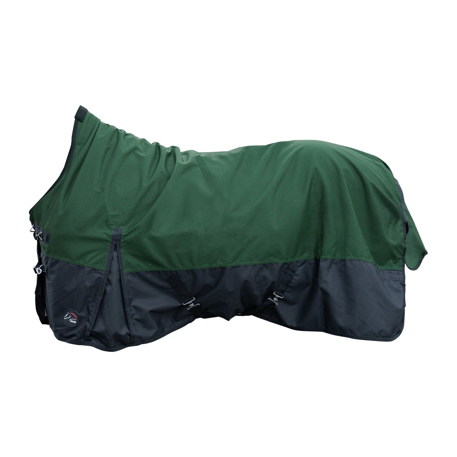 The HKM 1200D 100g Highneck Rug -Glasgow- offers superior protection against the elements with its waterproof, windproof, and rip-proof design. With guaranteed breathability and adjustable closures, it provides a comfortable fit while keeping your horse dry and clean. Its smooth fabric and inner lining make it easy to clean and maintain.