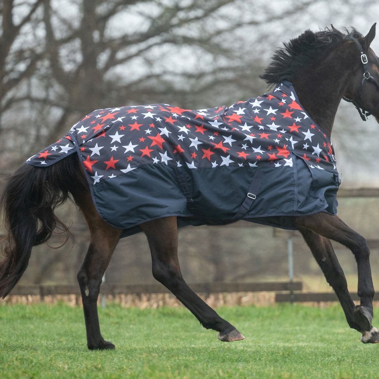 The HKM 600D 300g Highneck Rug -Norwich- is a durable and functional choice for your horse. With its waterproof, windproof, and breathable design, it offers superior protection and comfort. The 300g cotton filling provides warmth and the smooth, rip-proof fabric is easy to clean. Plus, the rug comes with adjustable front closures, a tail strap and guard, and a convenient bag.