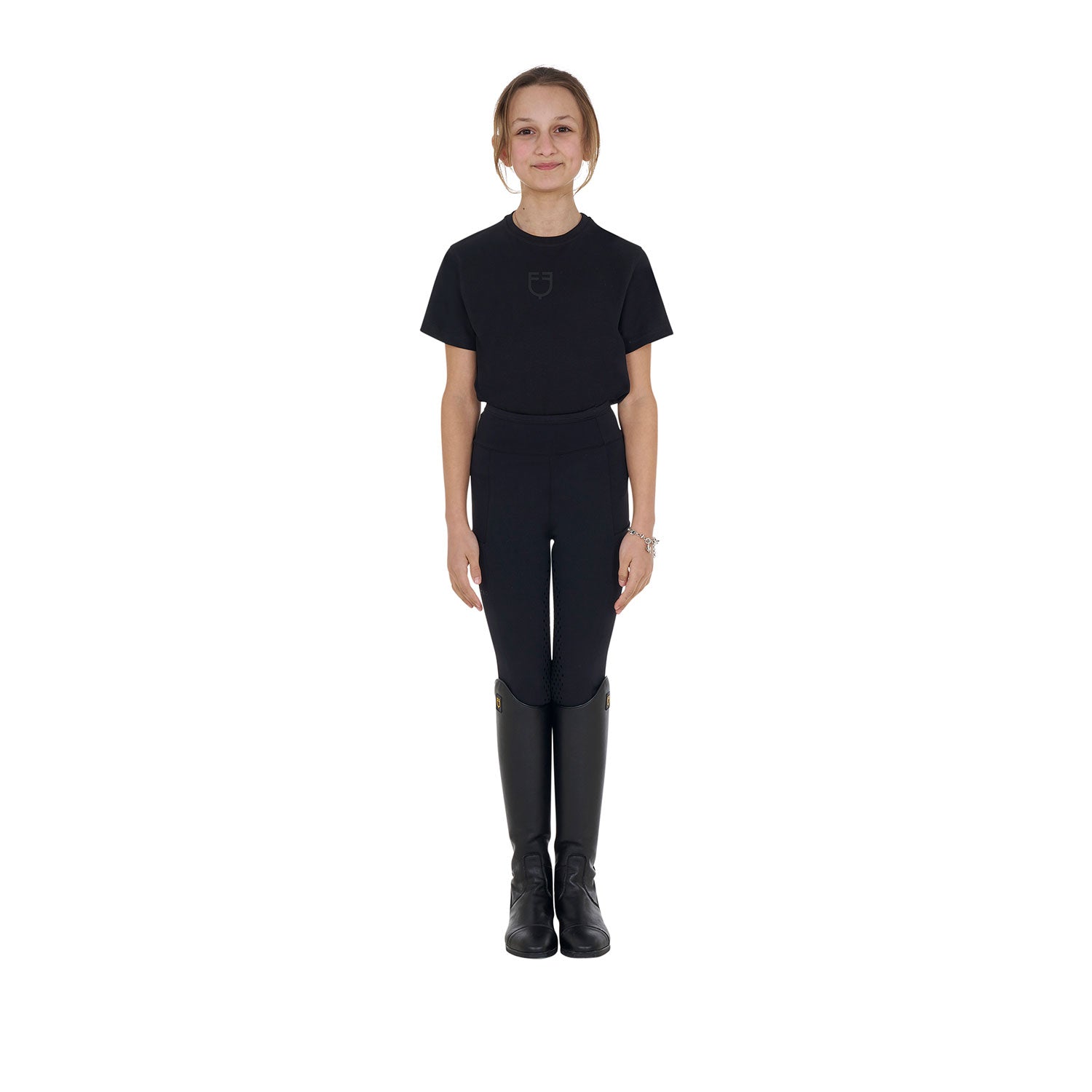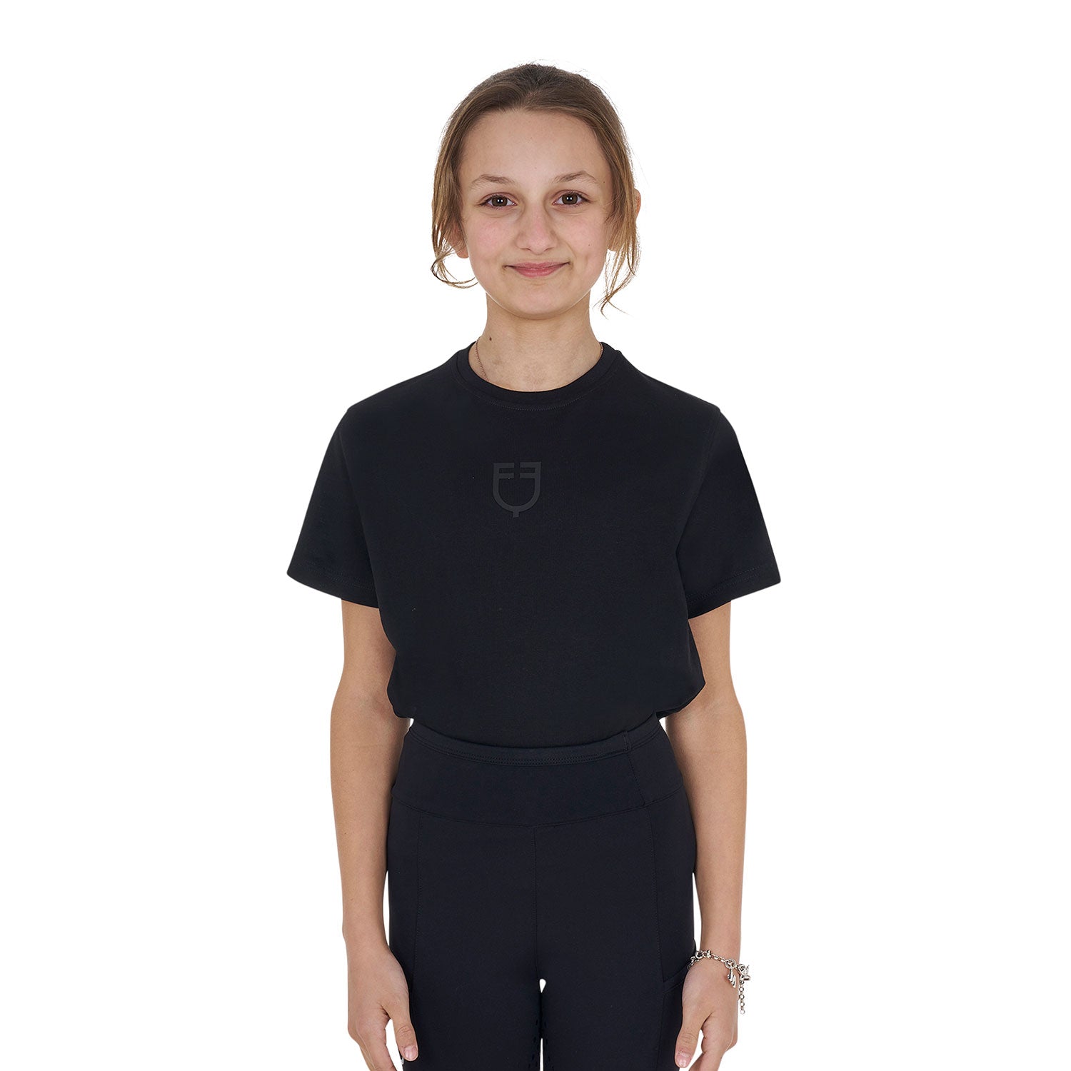 Equestro Girls' Basic Cotton T-Shirt With Tone On Tone Logo - Black / 10 Years is backordered and will ship as soon as it is back in stock.