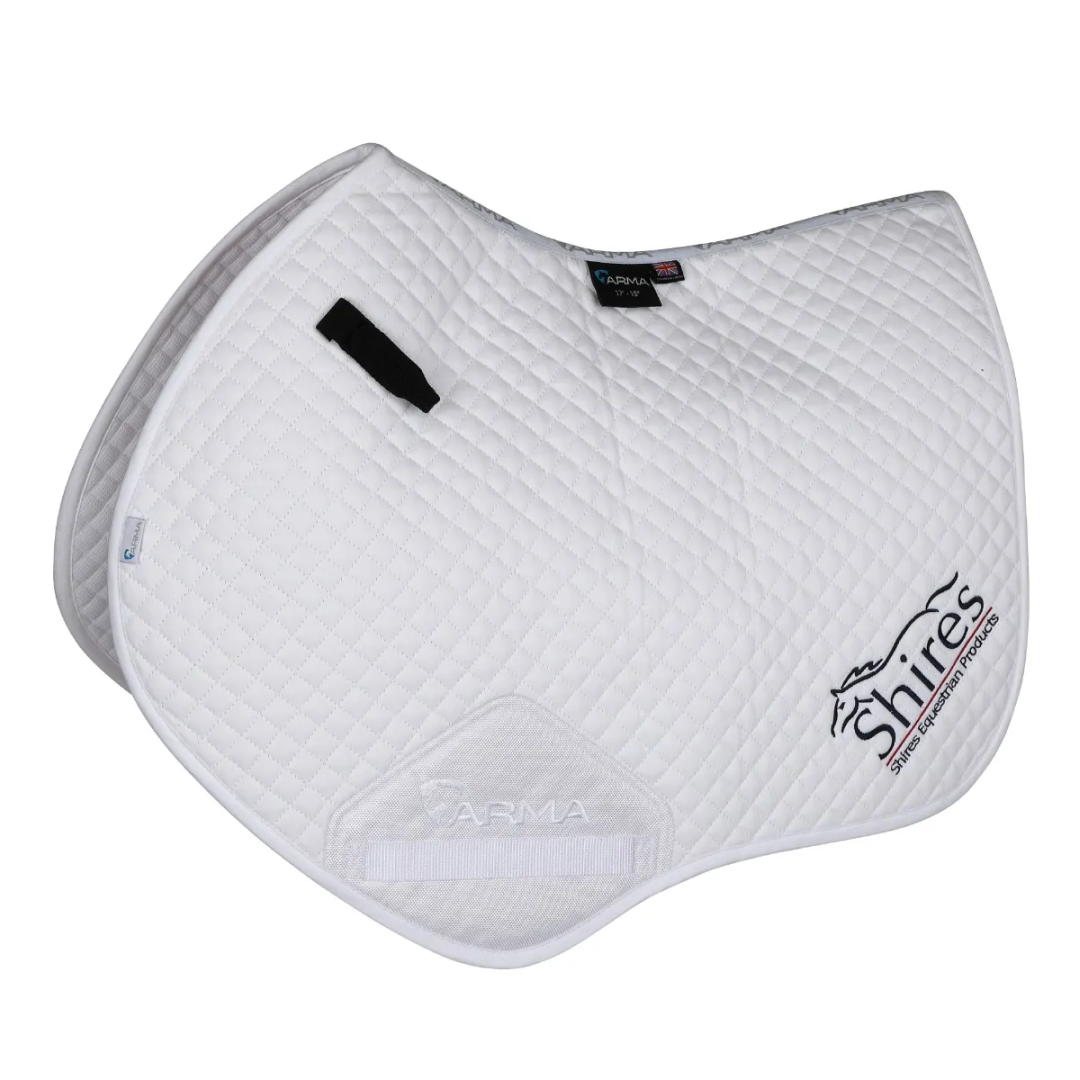 The Shires Branded Jump Saddlecloth is smartly branded and used by the #shiresprorider team. Breathable stay-smart anti-pill 100% cotton outer. ULTRA DRI ZONE lining instantly wicks sweat from the horse to reduce the risk of rubbing and increase comfort. Girth guides and elasticated D-ring straps for convenient security. Hardwearing girth guards.