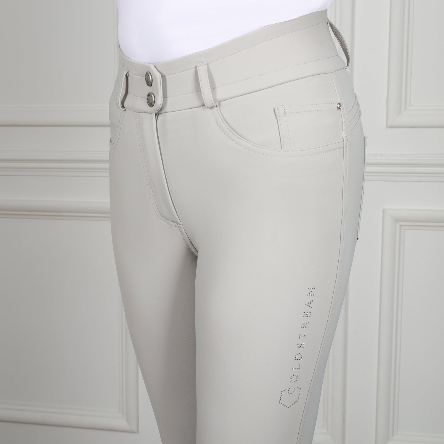 Coldstream Ladies Ledmore Diamante Breeches - Pearl Grey / UK 6 is backordered and will ship as soon as it is back in stock.