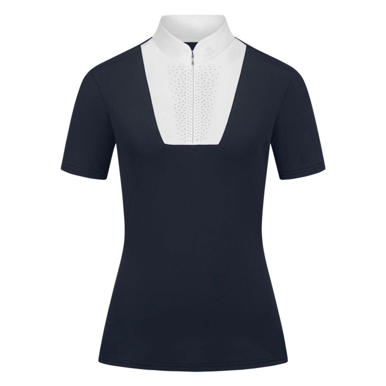 The E.L.T Paola Competition Shirt is a stylish and functional short-sleeved competition top designed for performance and elegance. Made from a breathable, technical fabric, it offers a fitted cut for a flattering silhouette while ensuring comfort during competitions.