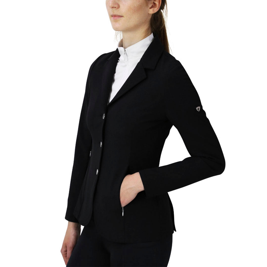 Features a stunning Hy Equestrian icon pin on the arm. The Silvia Show Jacker is securely fastened with three silver buttons, making this the perfect addition to your competition outfit, to freshen up your wardrobe for the upcoming season.