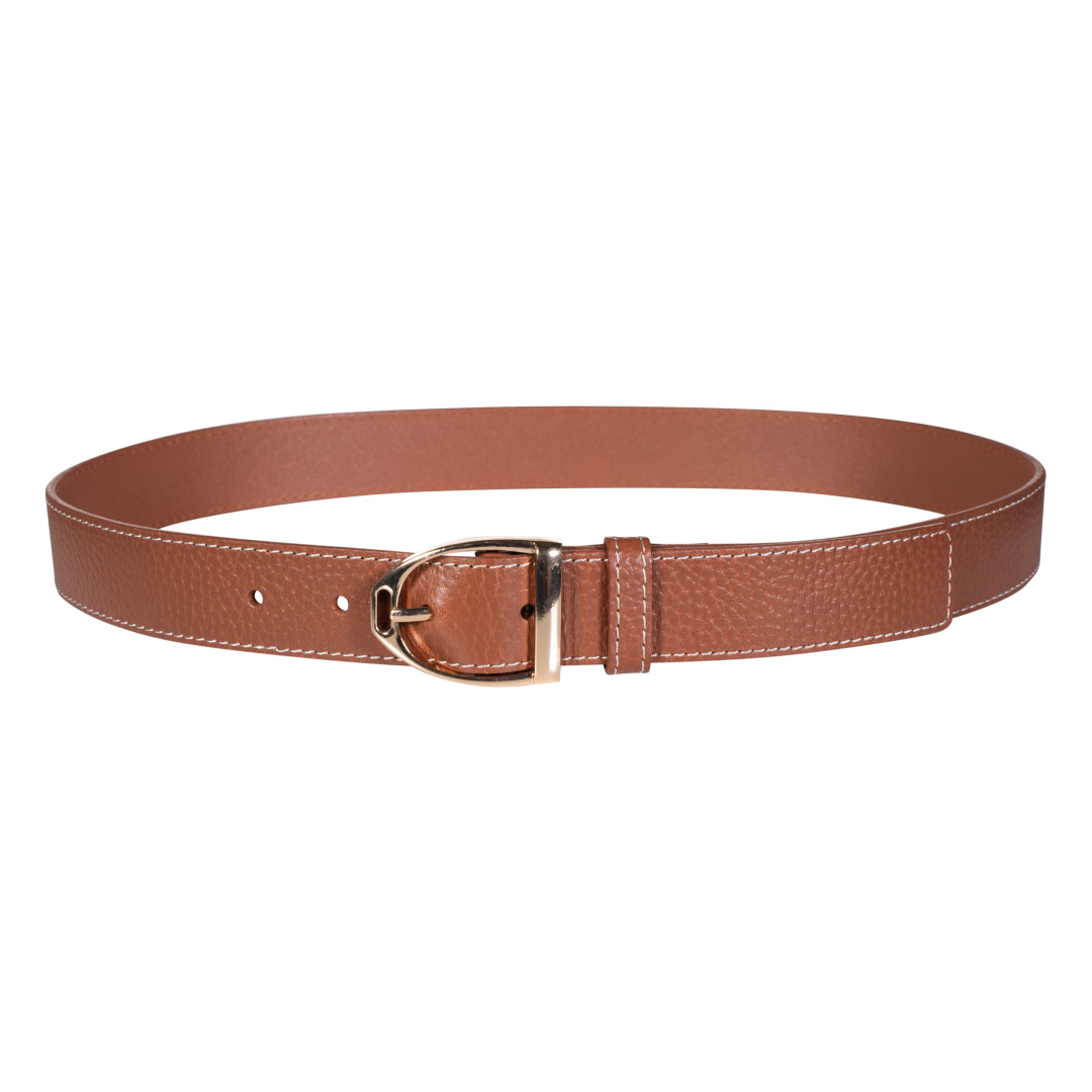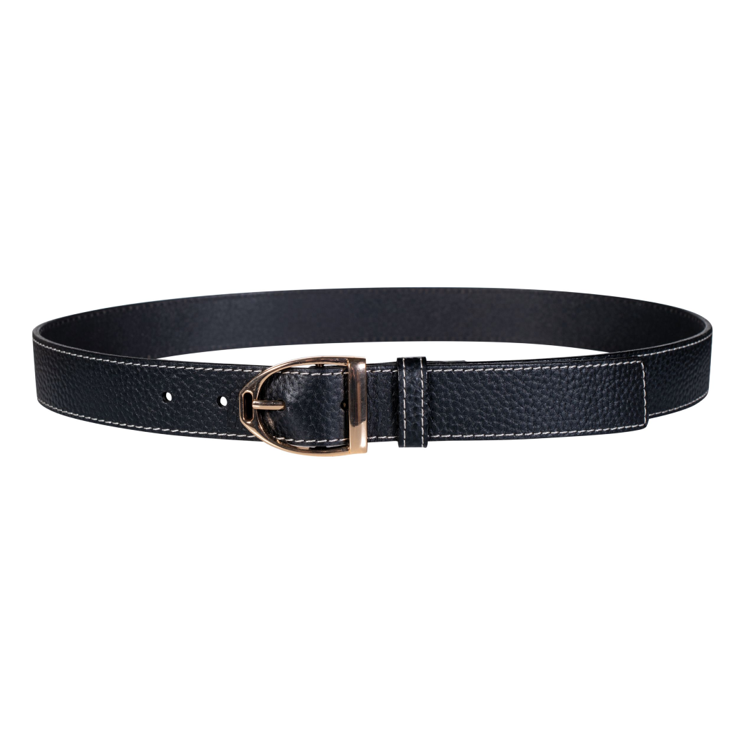 The HKM Leather Belt - Marrakesh - is a stylish accessory that will add a touch of elegance to any outfit. The belt is made of high-quality leather and features contrasting seams that give it a unique and eye-catching look. The golden buckle adds a touch of sophistication and completes the overall design of the belt.