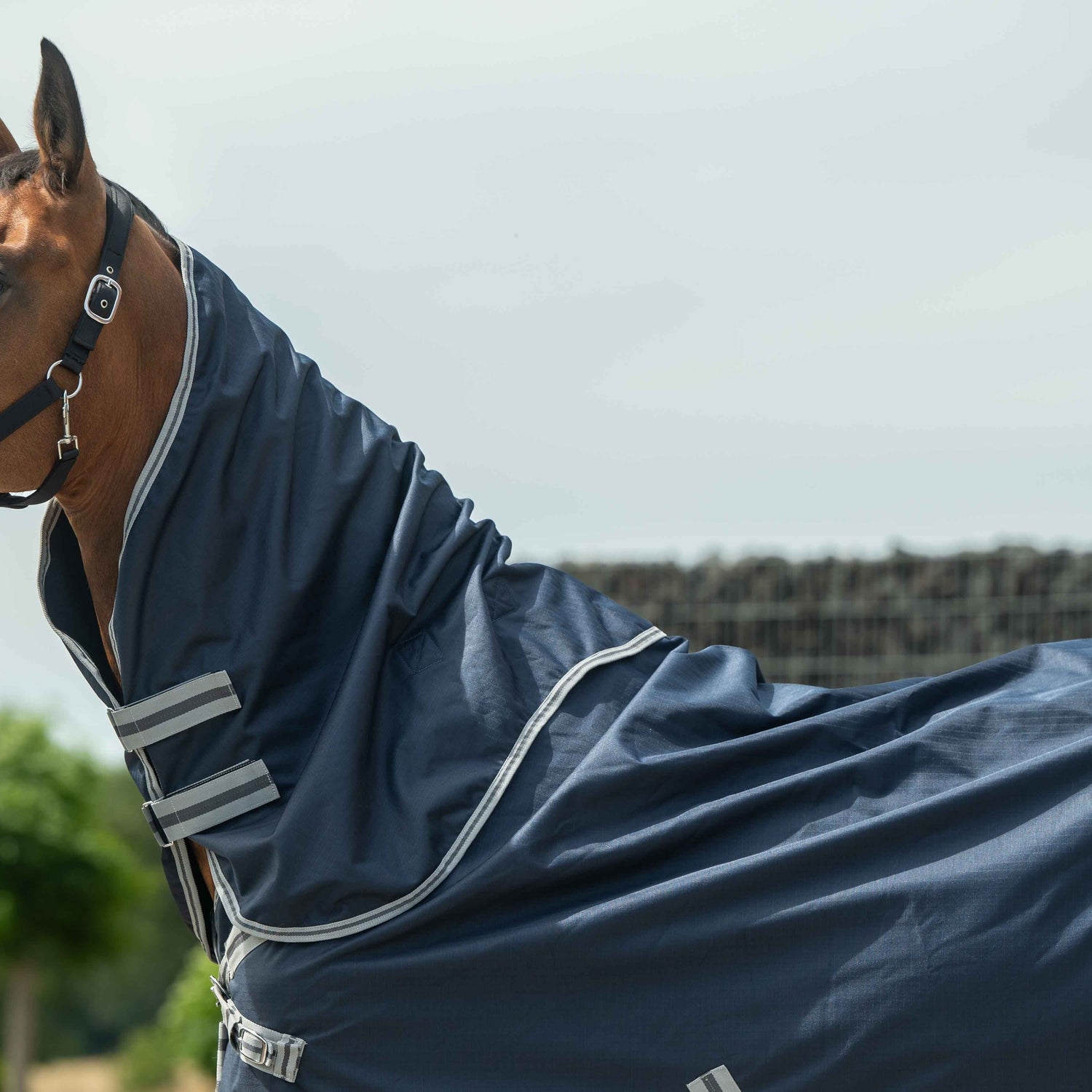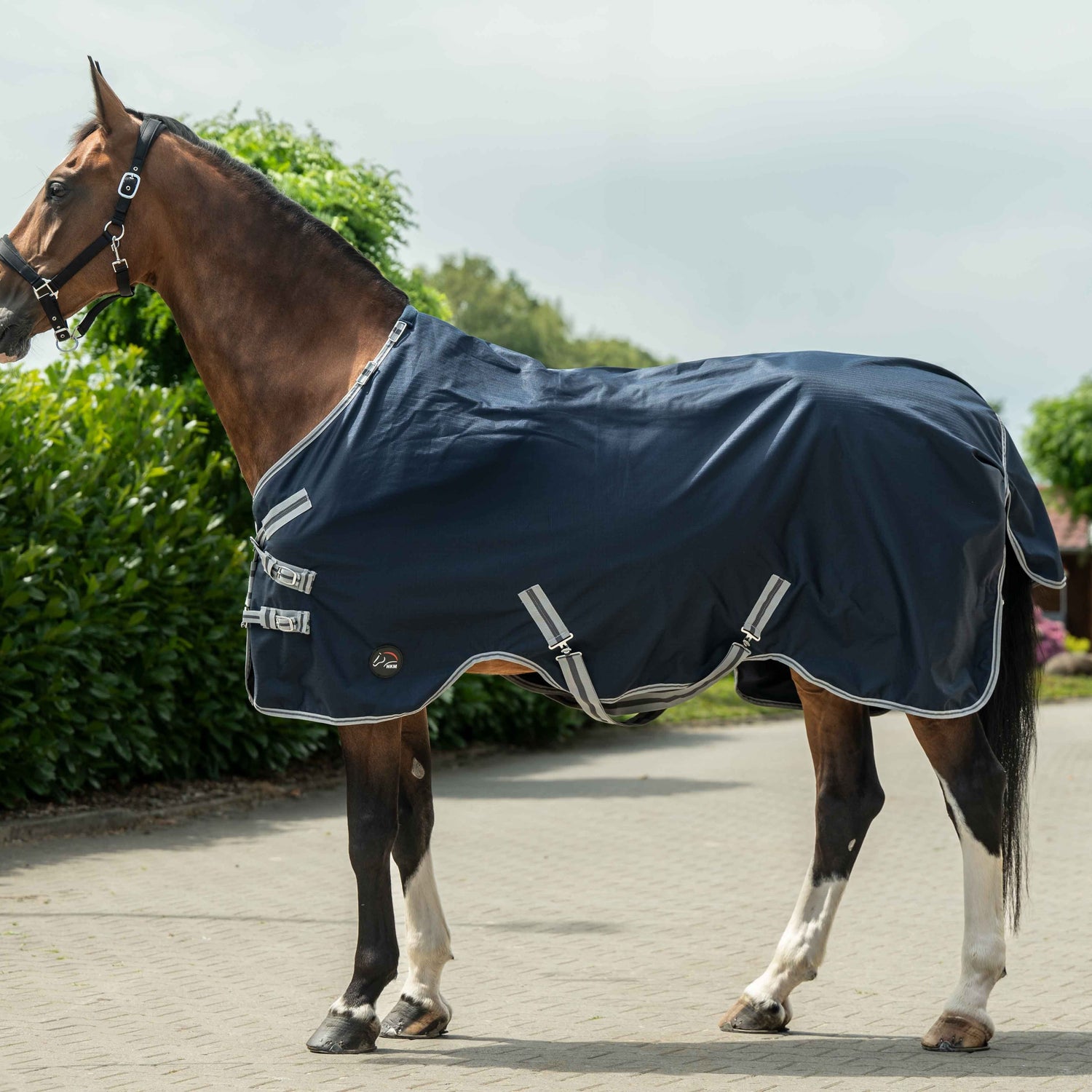 The HKM Turnout Rug with Detachable Neck -Therma Pro- is a high-quality choice for your horse. Its waterproof and breathable design guarantees 3.000 ml m²/24 h of breathability and can withstand up to 3.000 mm of water. The Breathe-Comfort hi-tech fabric quickly transports moisture to the outside, keeping your horse comfortable and dry. With a flexible v-closure system and a longer back length for an optimum fit, this rug can be used as a rain rug all year round. Plus, its temperature regulation from -10°C to 20 °C makes it extremely weatherproof. However, caution should be taken with clipped or older horses, as the sensation of warmth is individual and should be checked regularly.