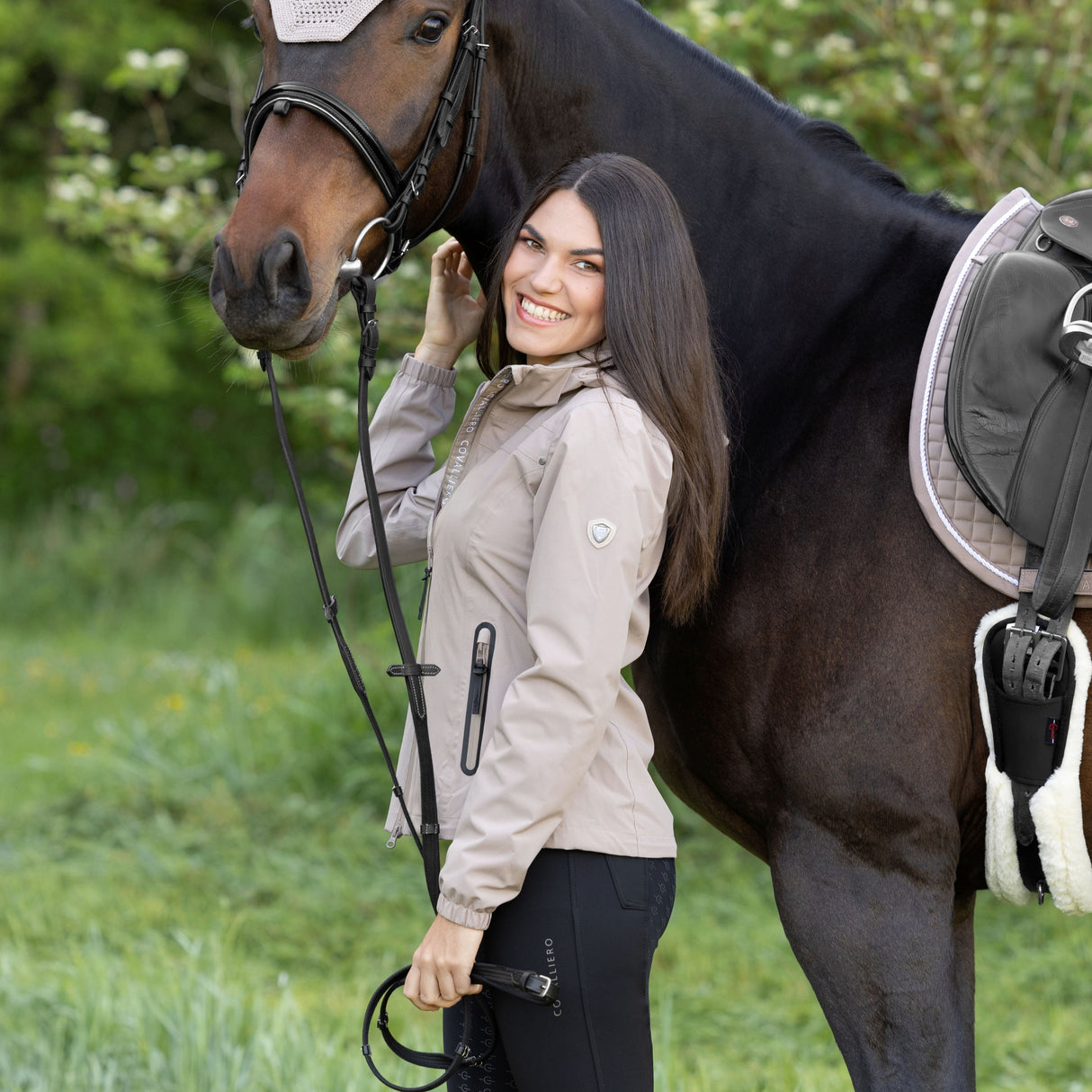The waterproof raincoat from Covalliero provides reliable protection in all weather conditions and features a removable hood that can be secured with a button. Designed for maximum waterproofing, it boasts a 10,000 mm water column and welded seams, ensuring excellent resistance to moisture. For an optimal fit, the coat includes elastic straps at the sides and elastic cuffs on the sleeves to keep the elements out.
