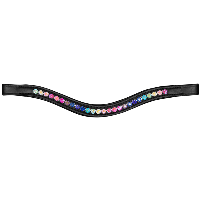 Decorative leather bridle for wooden horse with curved browband with colourful glitter stones. Supplied with reins.