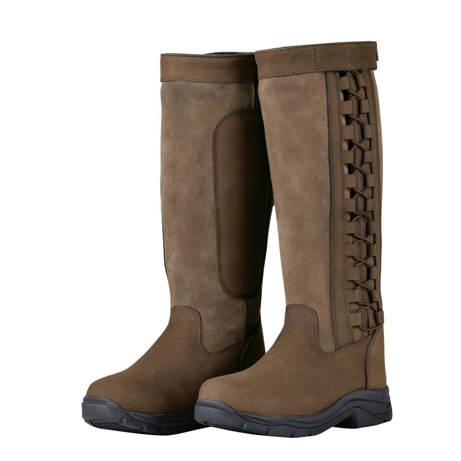 The Dublin Pinnacle III Boots provide exceptional breathability and long-lasting comfort. They have a full-length waterproof membrane lining to keep your feet and lower legs dry. These boots are lightweight, yet durable, and feature an ultrasoft Phylon midsole and Tough Tec rubber outer sole. e. They are fashionable, full leather lifestyle boots with full side lace adjustment for a customised fit, adorned with Dublin branded metal aglets.