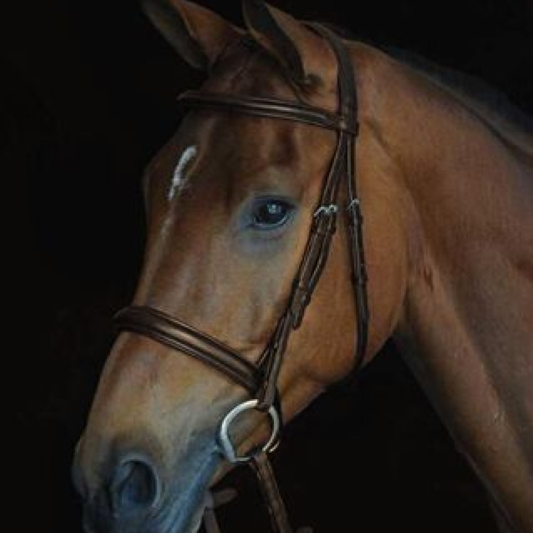 - Stilfuld hævet Cavesson -hovedtøj med blødt polstret komfortkronens hovedstykke.