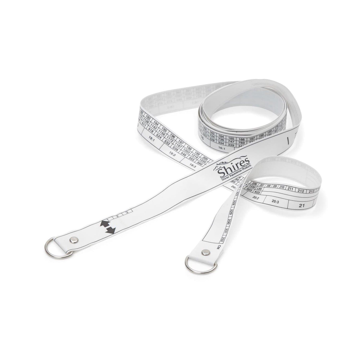Stærk, let at rengøre bånd, der måler: omkrets i centimeter, vægt i lbs, vægt i kgs og højde i hænderne. Nyttigt til at holde øje med hestens vægt året rundt.