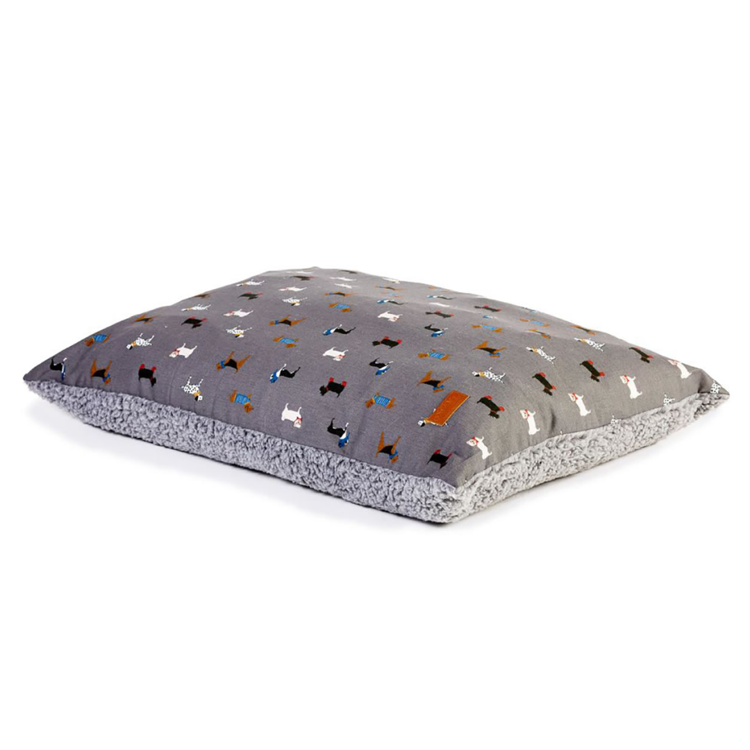 Dansk design Fatface marcherende hunde dyb dyne - lavet fuldt ud i England, Fatface -kollektionen er fyldt med 100% genanvendt fiber, lavet af plastflasker. Har et finurligt design af hunde, trykt på 100% bomuld og parret med en blød grå Sherpa -fleece, der er strikket i Storbritannien fra 100% genanvendte fibre. Fatface bomuldsprodukter understøtter mere bæredygtig bomuldslandbrug.