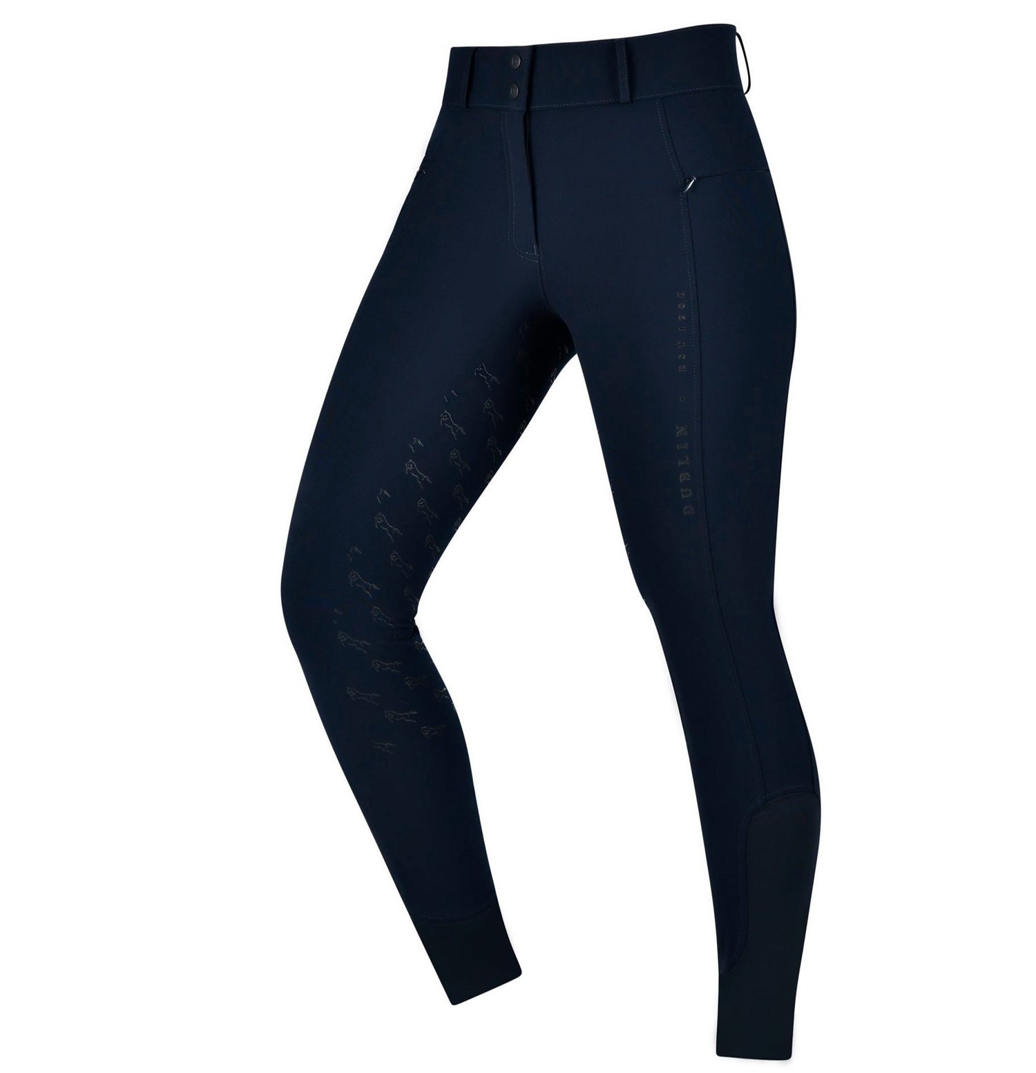 The Dublin Thermal Riding Breeches are an essential to keep you warm and clean on the cold days this winter. Made from a thermal brushed back four way stretch fabric designed to keep you warm and comfortable all day. The outer of the fabric is splash proof to repel dirt, dust, hair and hay so you can remain clean and smart even on those damp days after grooming and mucking out. The full gel seat is designed to give you extra stability whilst training or hacking, while the mid-rise elasticated waistband offers security and comfort as well as featuring belt loops and front fly zip with hook and bar closure for ease. These winter horse riding breeches have a high stretch knit panel at the lower leg for a smooth and comfortable fit under your chaps/gaiters or inside your boots. Keep your phone safe in one of the side pockets with zip closure.