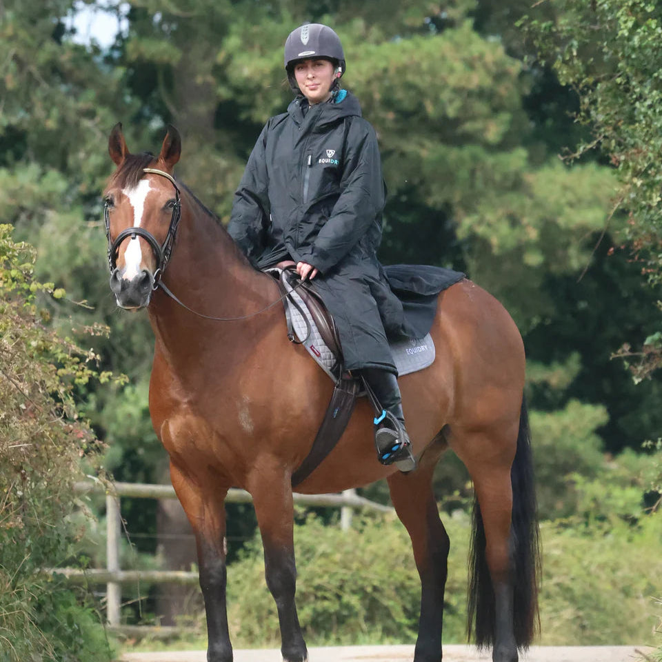 The EQUIDRY Women’s Thick Fleece Evolution Jacket is designed to keep you dry in all weathers, with an outstanding 20,000mm waterproof rating and breathable material. Its oversized, full-length cut with thick fleece lining provides warmth and freedom of movement, while leaving room for layering or wearing a body protector. Riding side zips with hidden storm skirts offer extra leg coverage in the saddle, ensuring comfort and protection throughout. Please refer to the detailed sizing guide to ensure the perfect fit and enjoy reliable performance with every ride.
