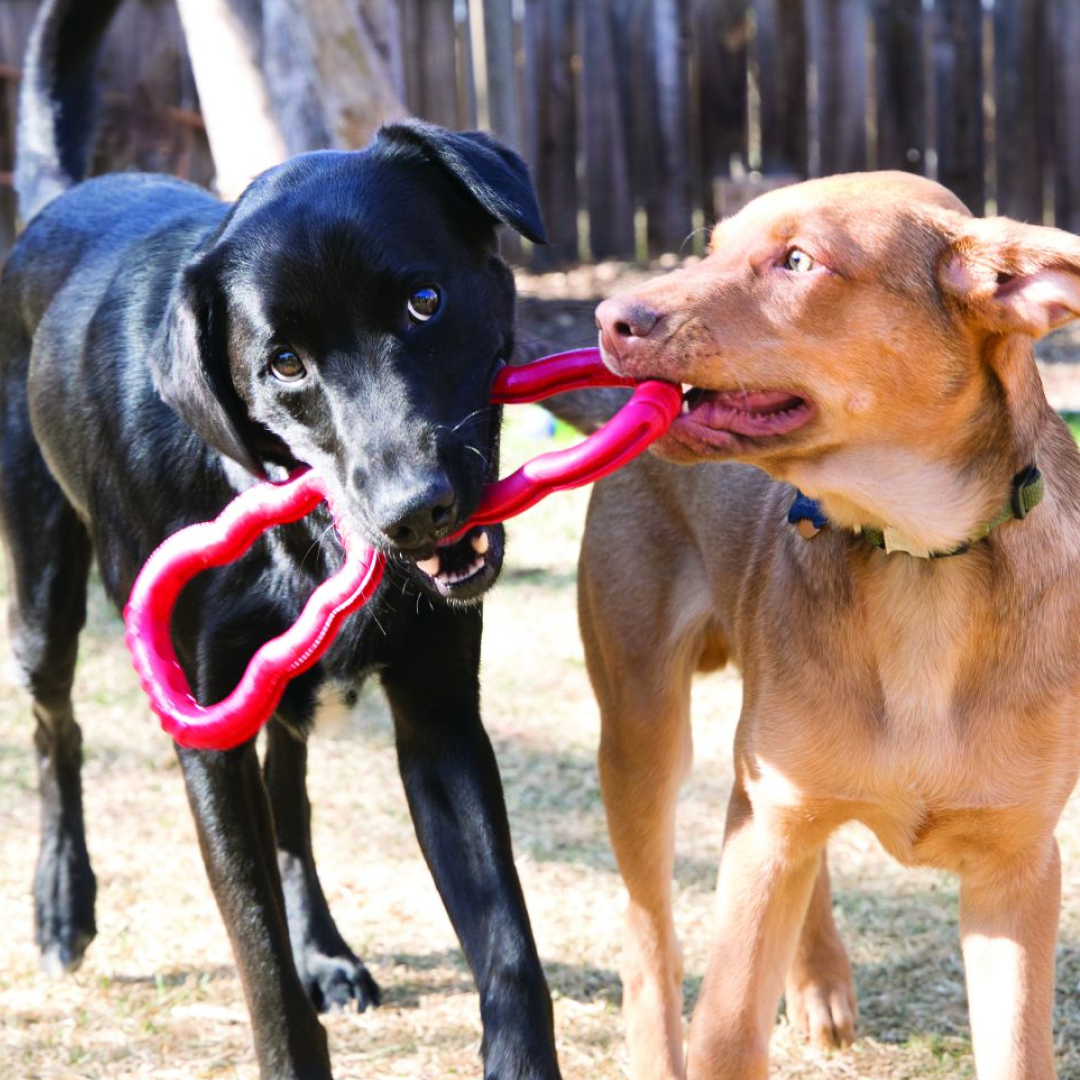 Kong Tug Legetøj tilskynder til interaktive legesessioner. Tuglegetøjet er lavet med naturlig Kong -gummi, der springer tilbage i form under et trækspil. De komfortable greb gør det nemt at holde fat under igangværende slæbespil.