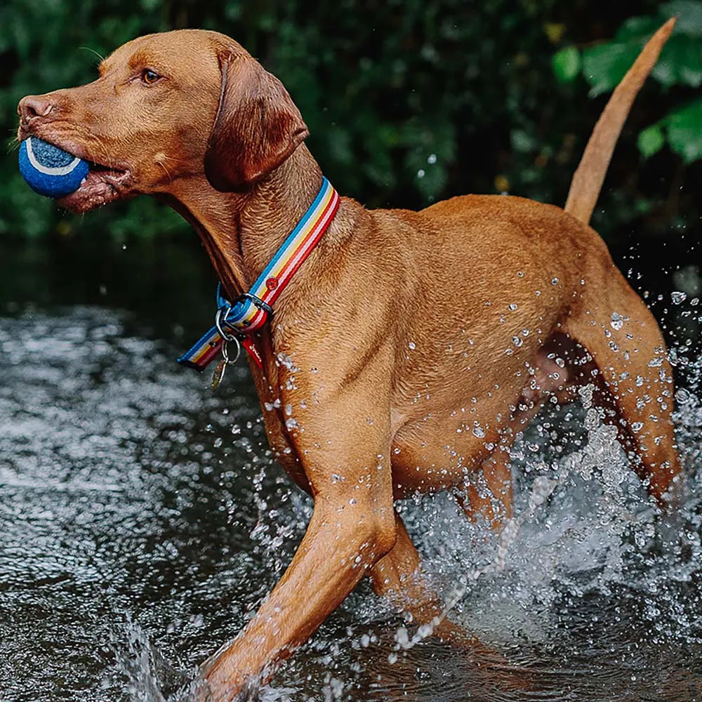 This striking dog collar is just thing if your best friend is in need of a bright new accessory for all their walks and adventures. It's both comfortable and durable meaning it can be enjoyed and loved for years to come. It features an adjustable buckle with branded embellishments and sturdy fittings for attaching your lead and ID tag. Pair it with our matching lead to complete the look.