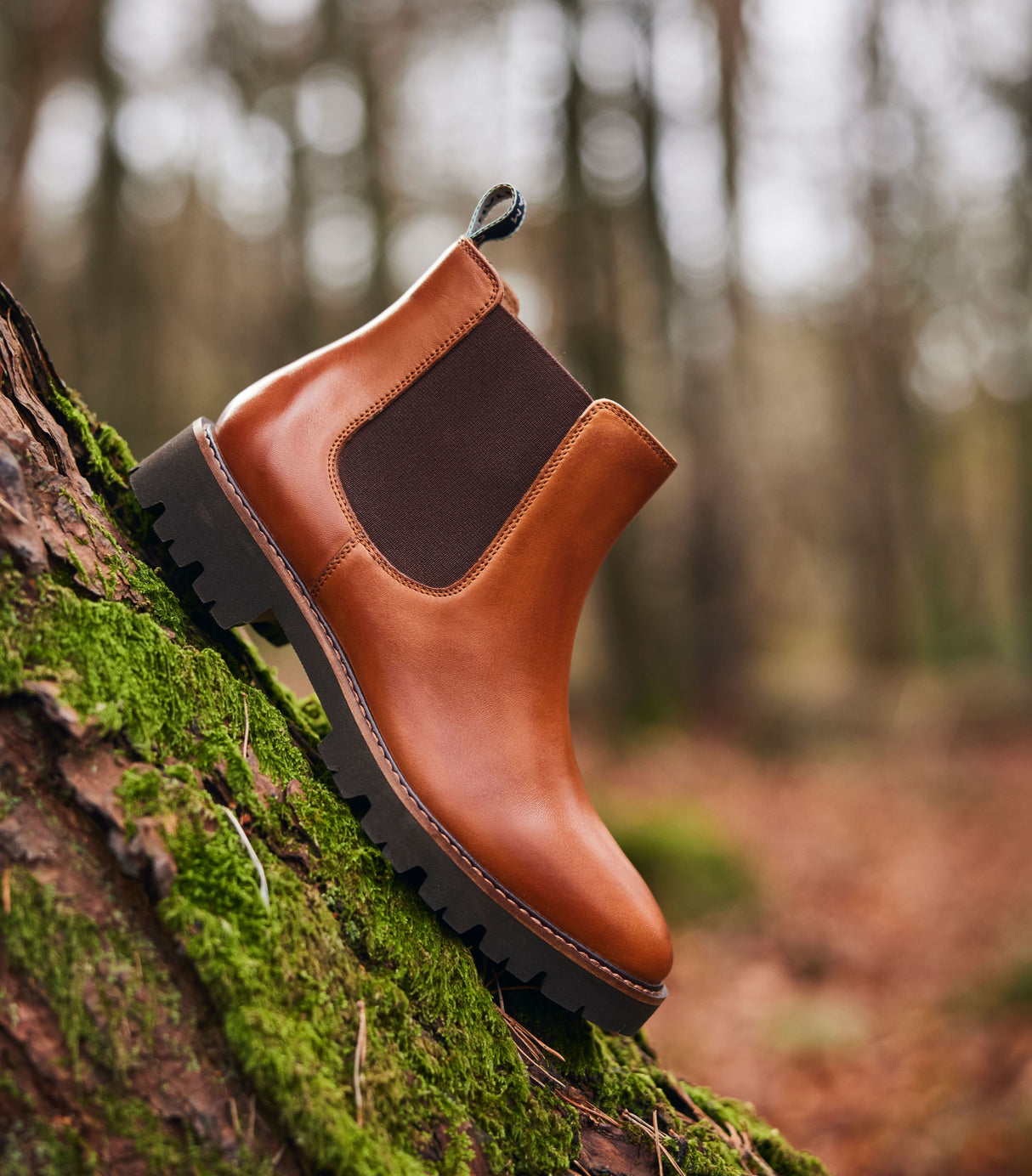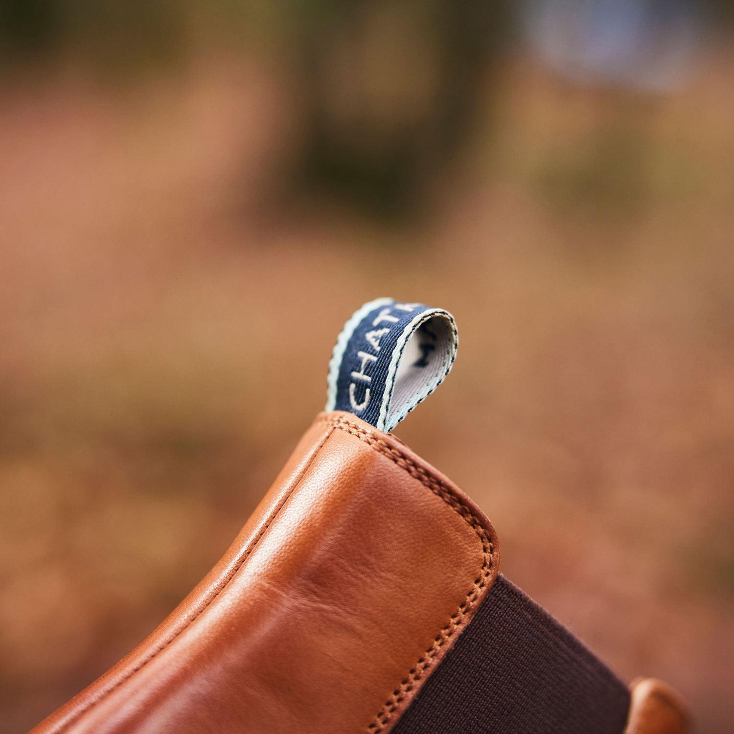 The Chatham Hickstead Chelsea Boots are a super lightweight Chelsea boot. They are made with a cleated EXTRALIGHT lightweight outsole. Ideal for travelling, or all-day wear, these boots have none of the normal weight you would expect. They are finished with a gorgeous burnished leather upper, and handy heel loop.