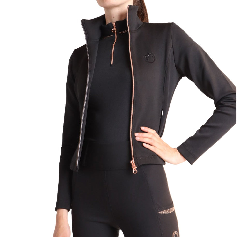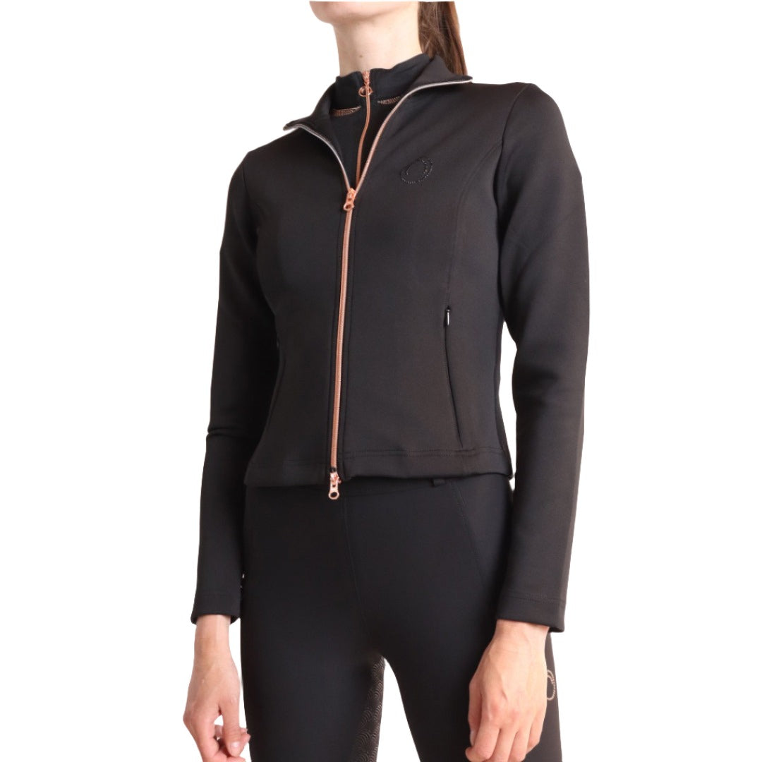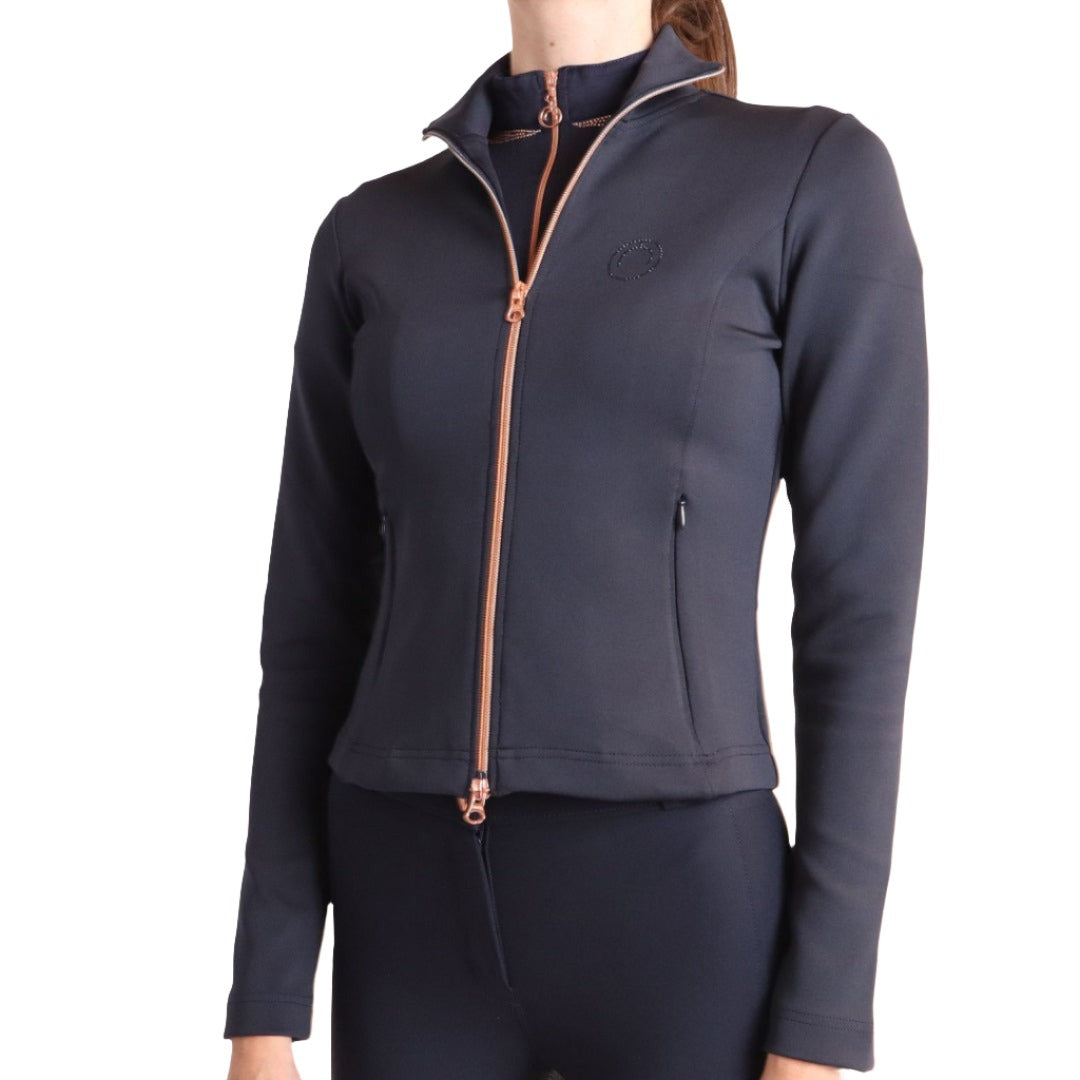 Introducing the MoTina Softshell Jacket: the epitome of timeless elegance and versatility in equestrian fashion. Crafted with meticulous attention to detail, this jacket features a rose gold zipper that adds a touch of sophistication to your ensemble.