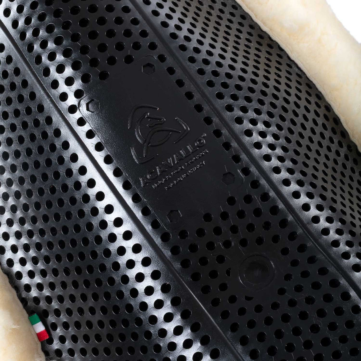 Additionally, the pad features a partial edge lining in Acavallo® sheepskin, a natural material that offers protection from chafing and maximum comfort. This combination of cut-out sheepskin and Classic gel provides a unique aesthetics.