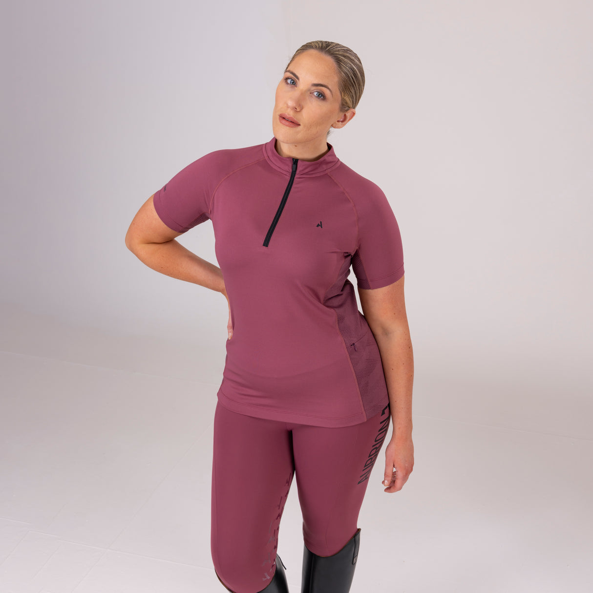 Shires Aubrion Ladies React Short Sleeve Base Layer - Mauve / L is backordered and will ship as soon as it is back in stock.