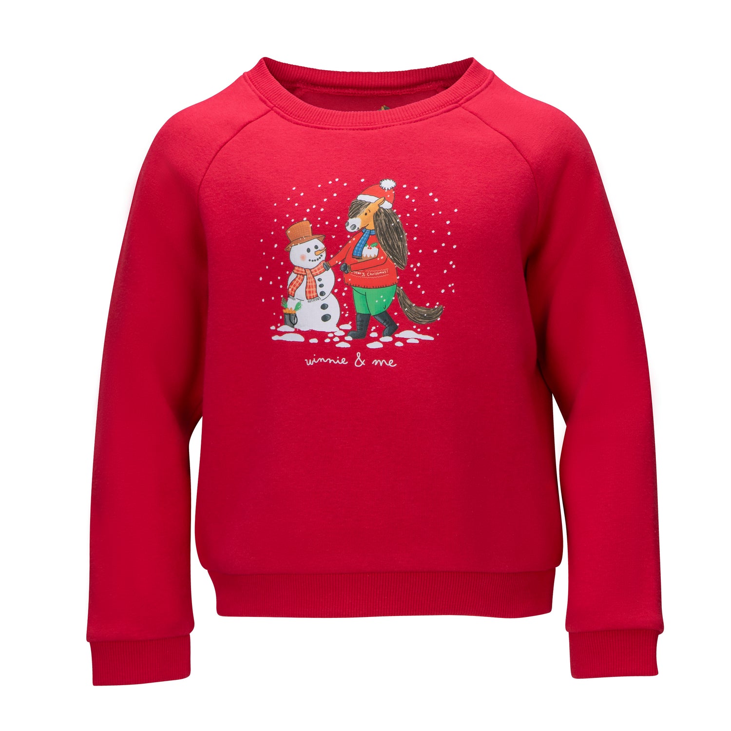 The delightful design showcases Winnie the pony dressed in holiday attire with a sweater, hat, and gift stack, highlighted by bright colours and charming details. Ribbed cuffs, neckline, and hem ensure a comfortable, snug fit, while the “Winnie & Me” slogan adds a heartfelt touch. A perfect gift or festive wardrobe addition for children who love ponies and the holiday spirit.