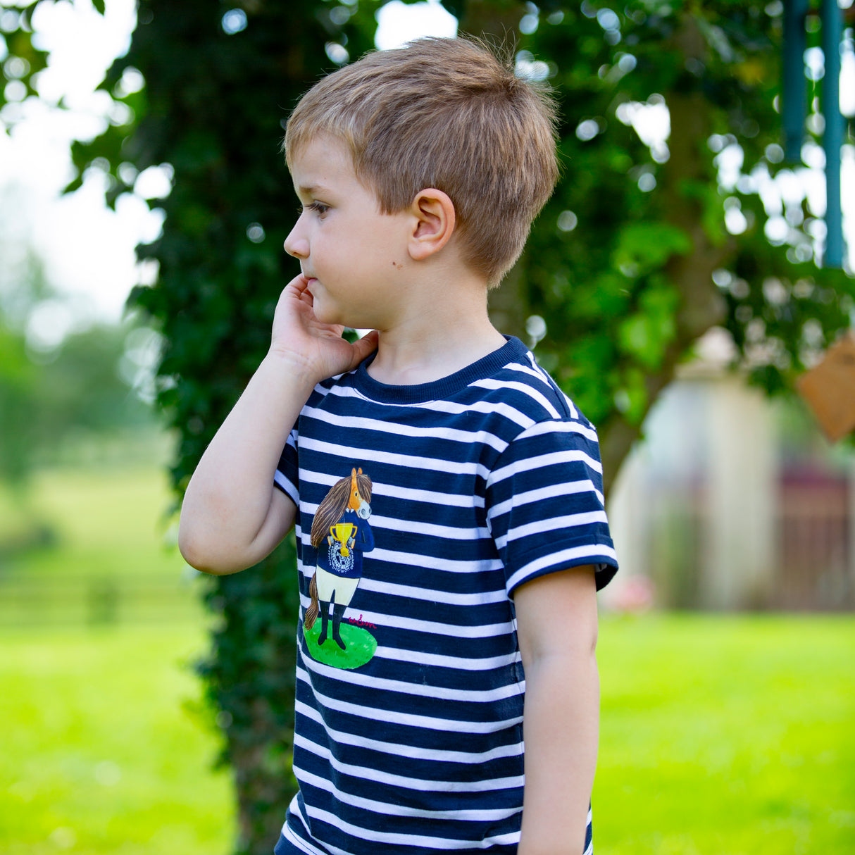 A crew neck t-shirt with turned up short sleeves and a relaxed fit. Featuring Show Pony Winnie who has won a trophy for best effort! Designed in 100% cotton for breathable comfort.