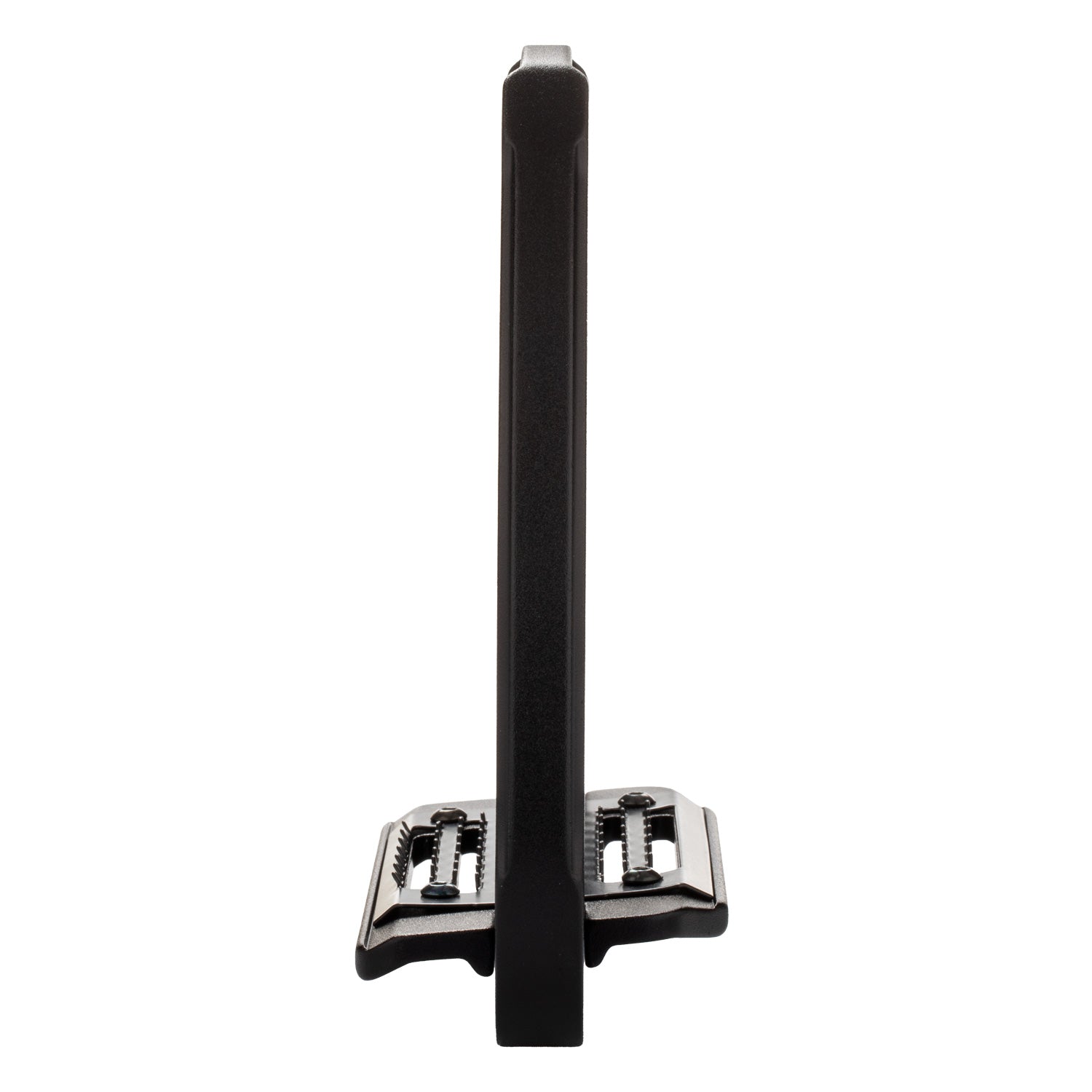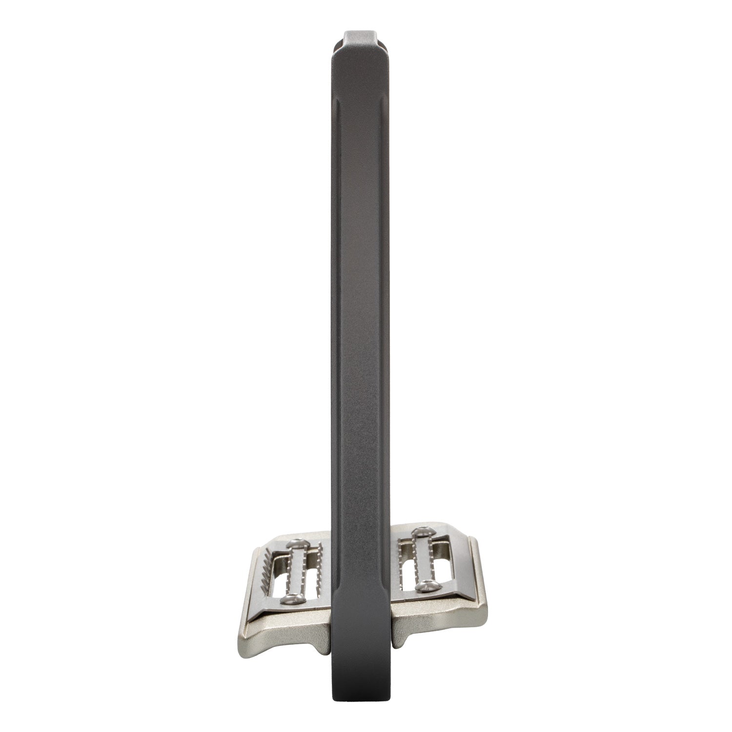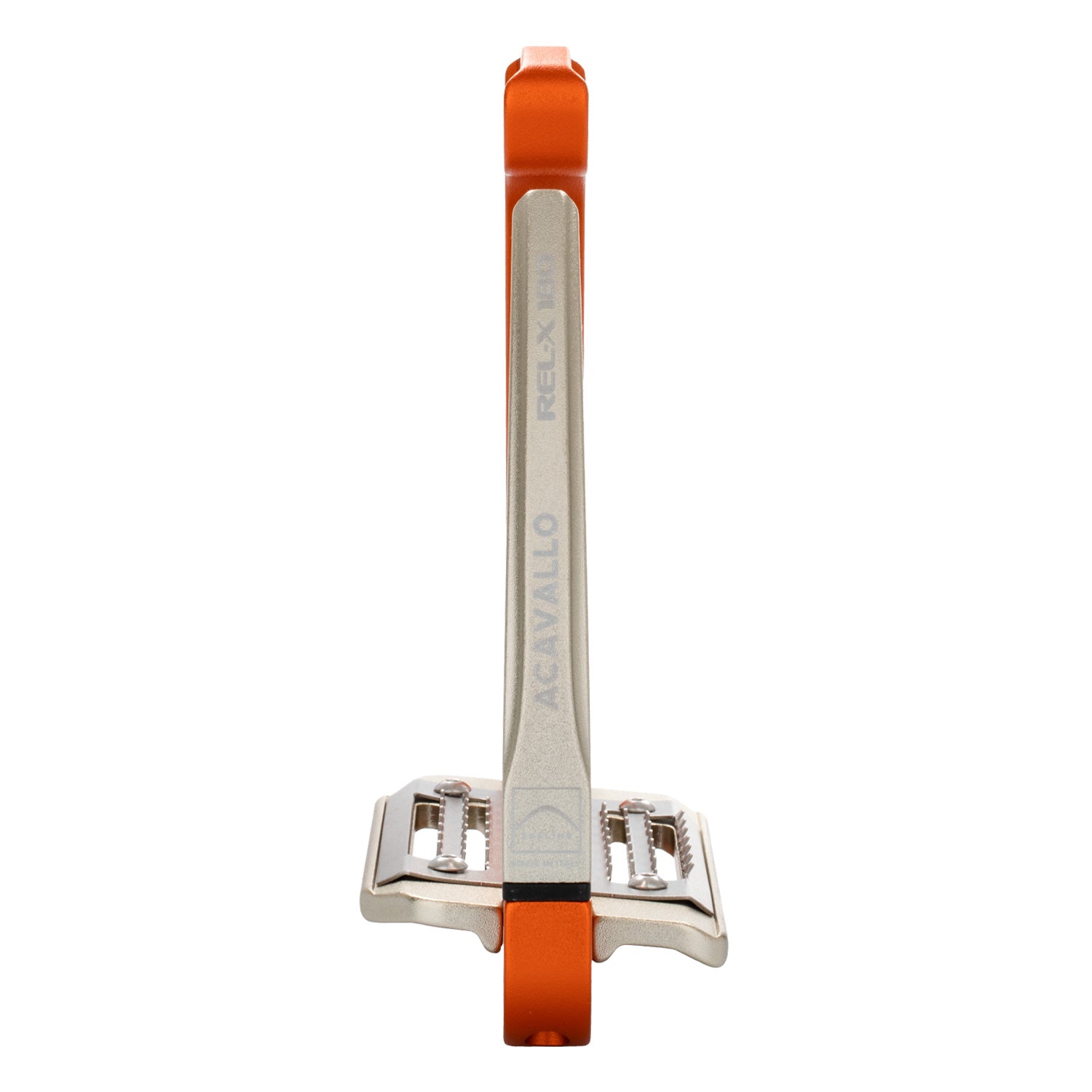 The strategically placed lock and release mechanism prevents accidental slipping. Pin and internal components are made of stainless steel. The tread is inclined at 5° and the footbed is equipped with Grip System. The stirrups are light weight (519 g) and feature a shot peening surface treatment.