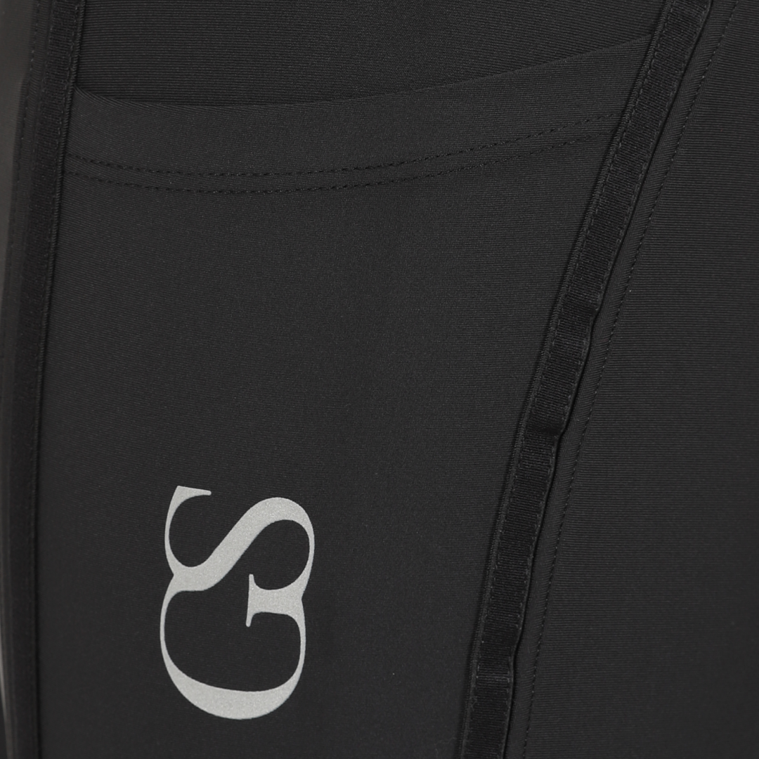 'GS' mønstret silikone -greb er nyt i GS -ridsområdet og tilbyder et stilfuldt look, mens det også er effektivt. Som et fuldt sæde ridet stramt, farves silikonen som den samme farve som ridningstrømmene, så de smelter ind i det stilfulde design, da det dækker en stor del af ridningstrømmene. Derudover er der et GS -logo på venstre ben, der er placeret på telefonlommen, der har et reflekterende tip til det.