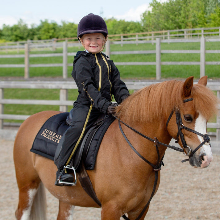 Supreme Products Active Show Rider Children’s Waterproof Onesie - Sort guld / Xs is backordered and will ship as soon as it is back in stock.
