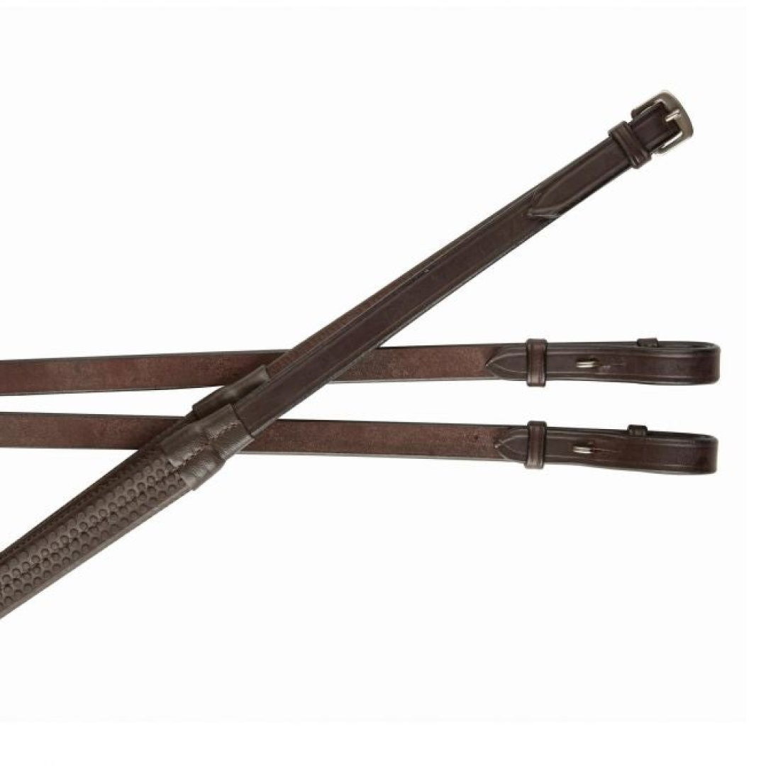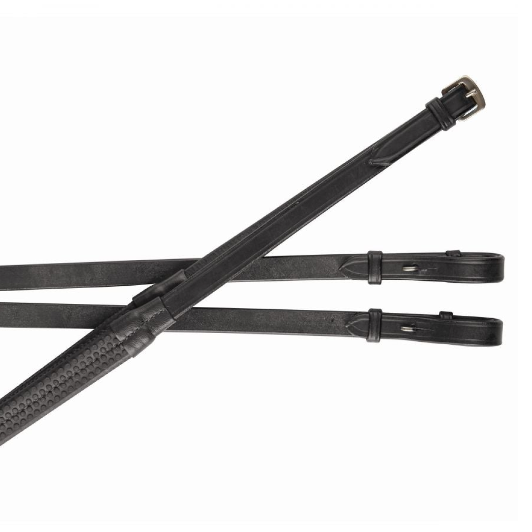 - Disse tøjler har den europæiske læderindsats af fineste kvalitet under gummien.