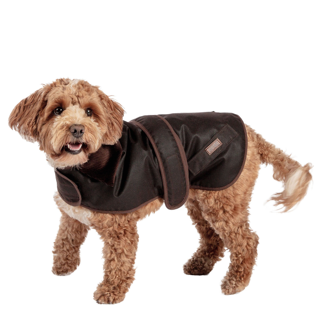 Dansk design Fatface Sussex Dog Coat - Denne chokoladefarvede frakke er pakket med dynger med gode funktioner til lodne venner. Lavet med vokset bomuld til en naturligt vandafvisende ydre og en hyggelig kontrol brændt orange foring for varme. Den snorede krave kan sætte sig op eller ned for at tilbyde øget beskyttelse afhængigt af vejret og er komplet med justerbare velcro-fastgørelser omkring halsen og midten. Fatface bomuldsprodukter understøtter mere bæredygtig bomuldslandbrug.