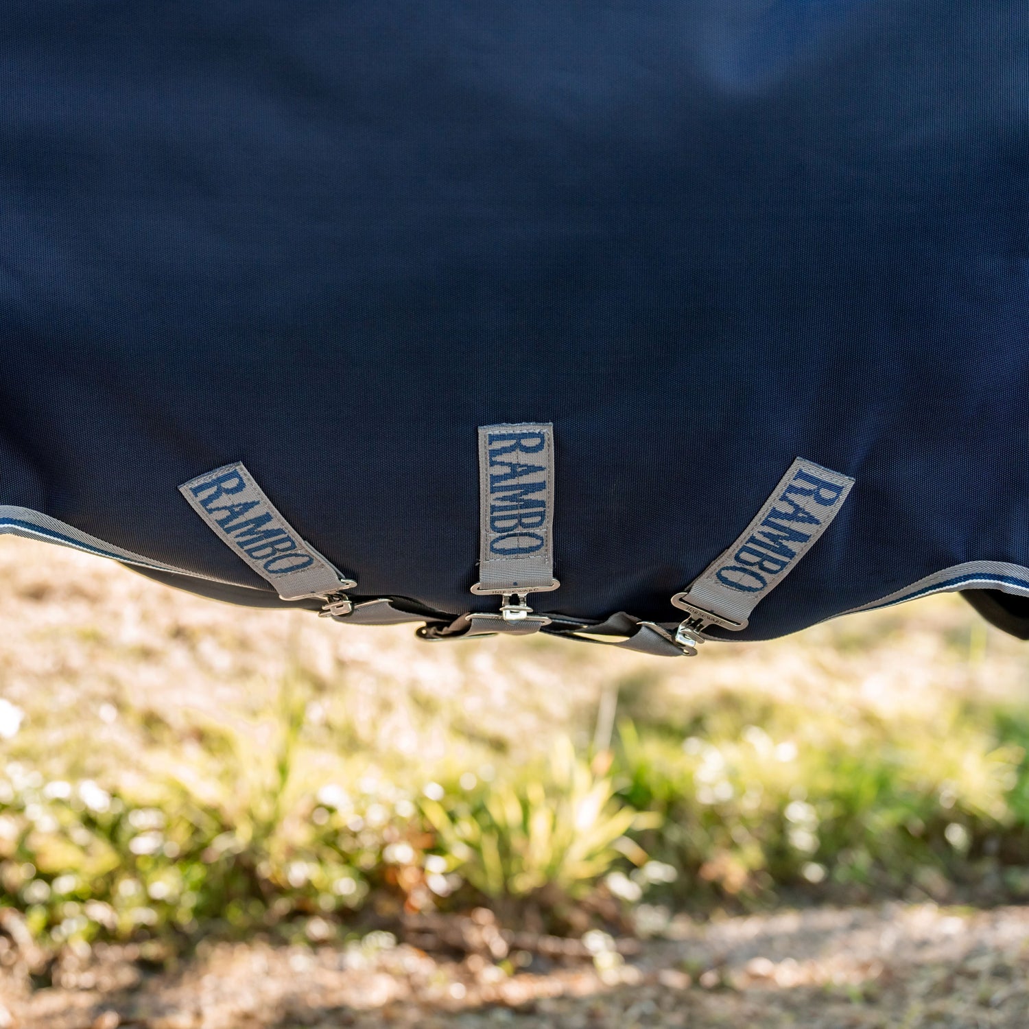 Horseware Ireland Rambo 1680D 450g Vari-Layer Turnout Rug - Navy/Thunderstorm Grey/Silver / 5'6 is backordered and will ship as soon as it is back in stock.