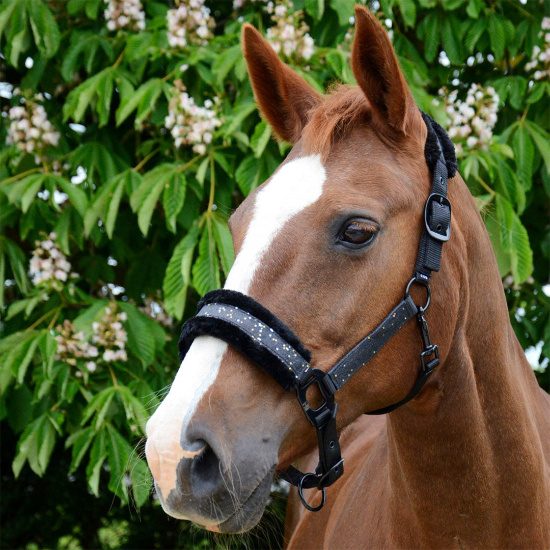 Tilsætningen af faux pelsdæmpning omkring næsen og hovedstykket giver forbedret komfort til din hest.