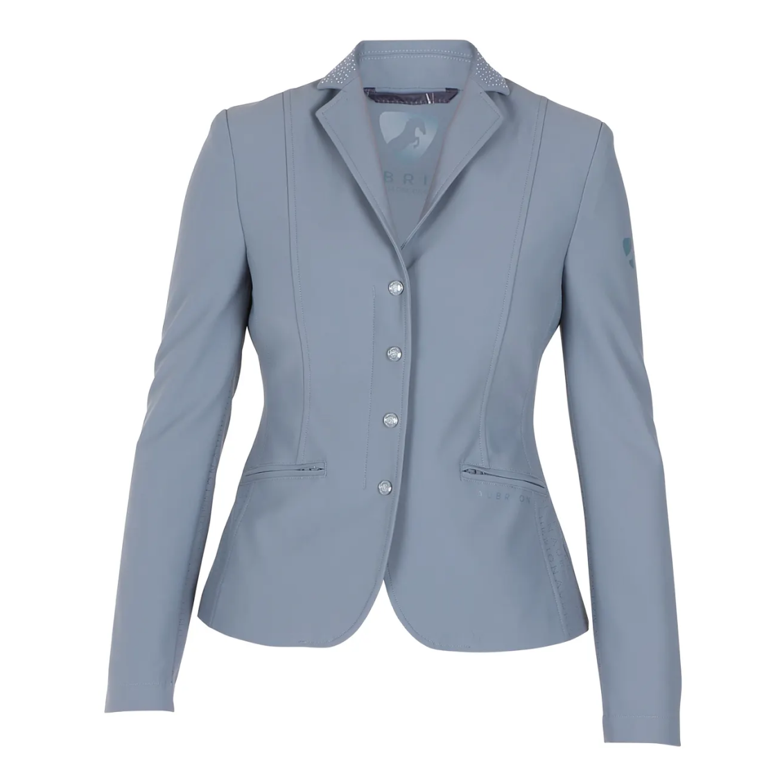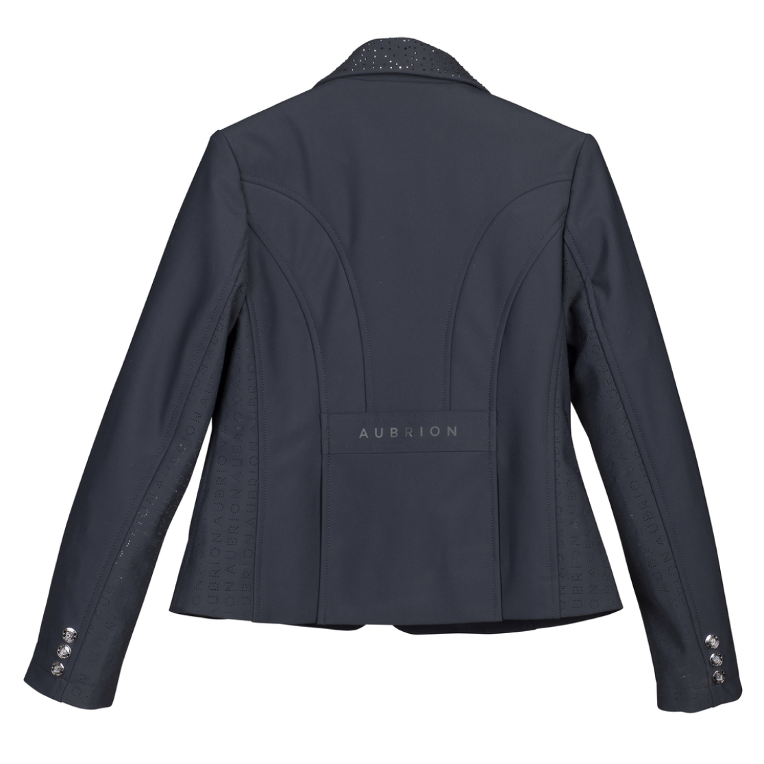 Shires Aubrion Children’s Newton Show-jakke skimrer under rampelyset og har en moderne sadelskummende længde med en slank konturform. Selvfarvet rhinestone Studded krave komplimenteres af gnistemaljeknapper ved midten af fronten og manchetterne.