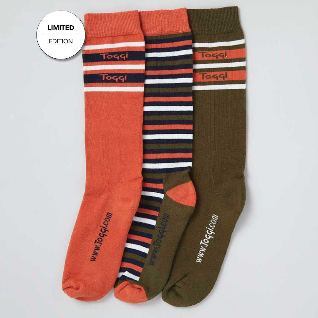 TOGGI RETRO STRIPE BAMBOO SOCKS - Terracotta/Navy/Sage / En størrelse is backordered and will ship as soon as it is back in stock.