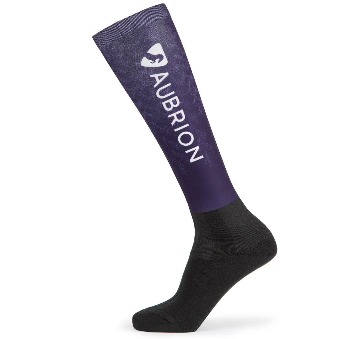 Shires Aubrion Hyde Park Maid Socken – Purple Lightning. Seien Sie mutig in diesen auffälligen Langlaufsocken, die unter langen Stiefeln ein geschmeidiges und stützendes Tragegefühl haben. Die zonale Polsterung hilft bei der Milderung von Aufprallstößen und absorbiert Reibung, die stützende Konstruktion schmiegt sich an Beine und Knöchel und unterstützt die Regeneration, feuchtigkeitsableitende Stoffe halten die Füße trocken.