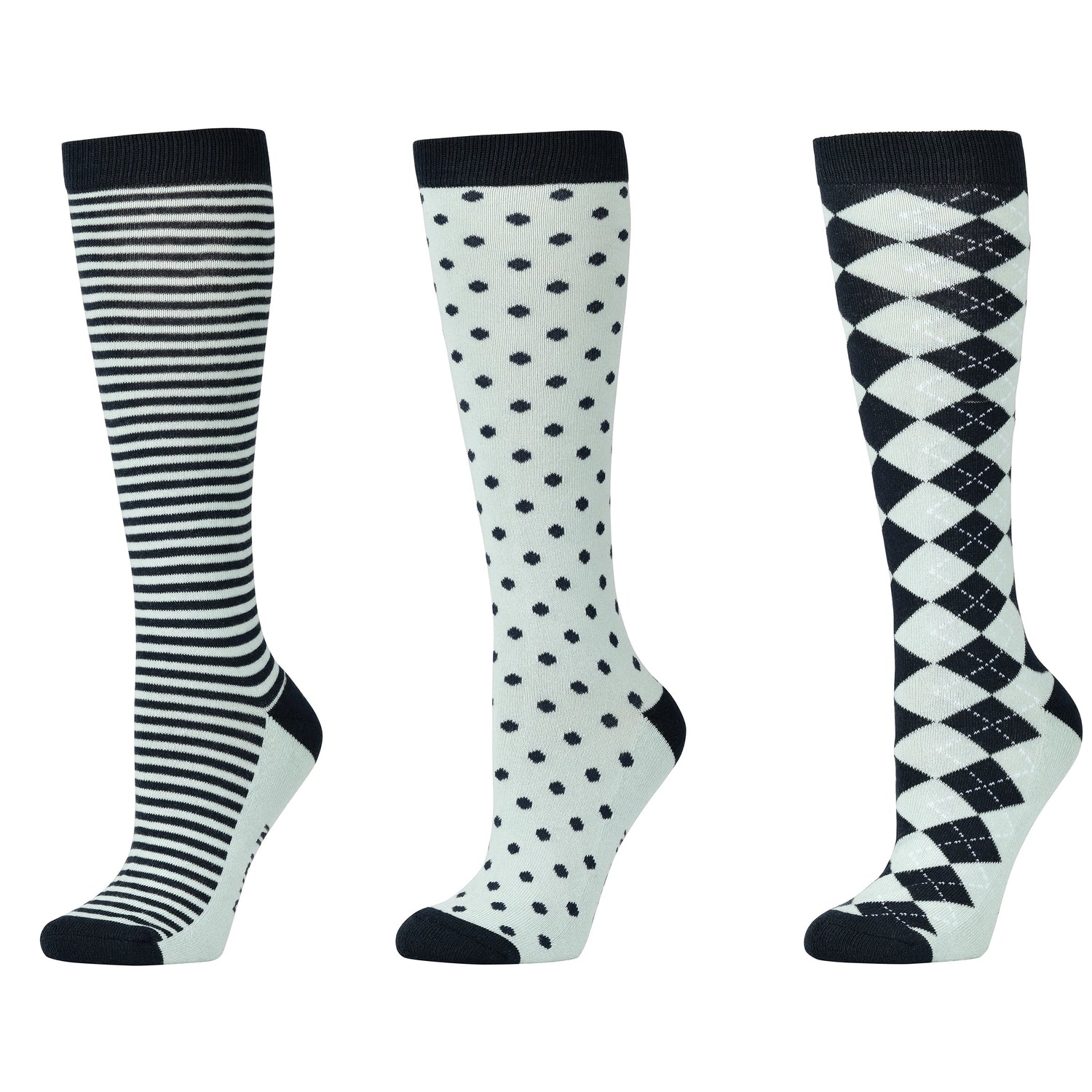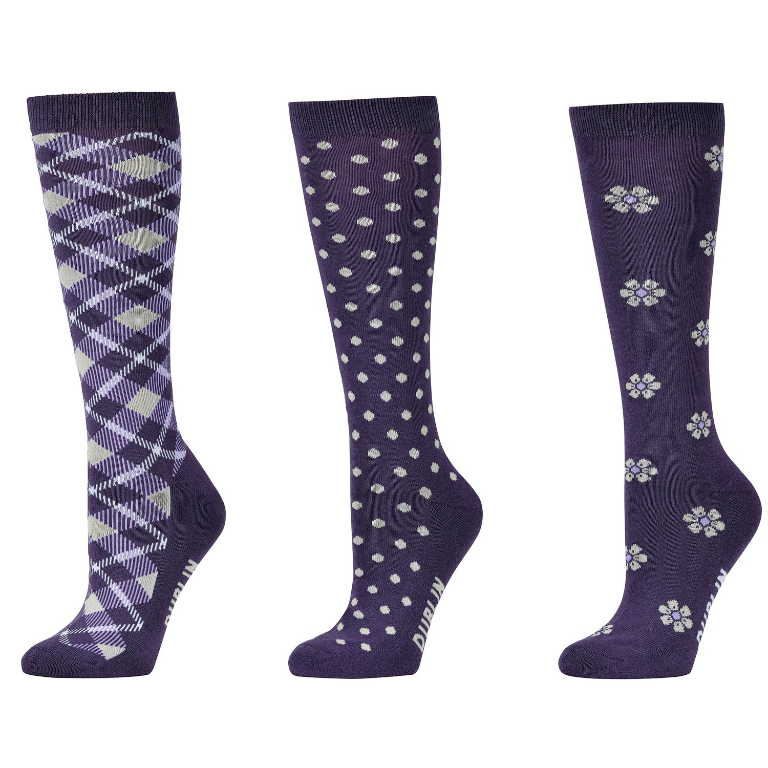 Verleihen Sie Ihrem Reitoutfit etwas Spaß und Farbe mit den Dublin 3er-Pack Socken. Diese Packungen mit hohen Socken verleihen jedem Outfit Farbe und Komfort. Sie bestehen aus natürlich atmungsaktiver Stretch-Baumwolle und sorgen dafür, dass Ihre Füße den ganzen Tag lang bequem bleiben. Eine Packung mit 3 Paar Socken in verschiedenen Designs.