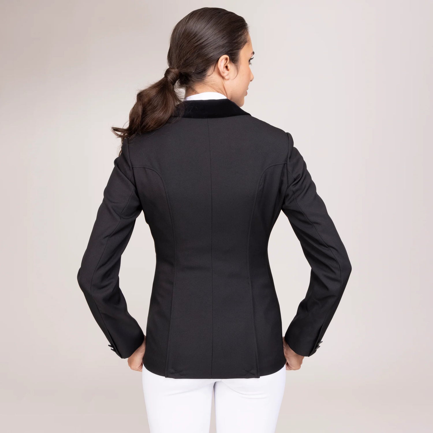 Diese klassisch geformte Turnierjacke zeichnet sich durch elegante Schnitte sowie einen mit Samt besetzten Kragen, doppelte Schlitze hinten sowie messingfarbene Knopfverschlüsse und Ärmeldetails aus. Da diese Jacke von Hand waschbar ist, ist sie besonders pflegeleicht.