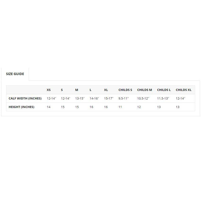 | Größe | Wadenweite (Zoll) | Wadenhöhe (Zoll) |