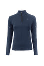 The Cavallo Milla Shirt combines a hybrid stand-up collar design with bi-elastic functional material and tonal mesh inserts in black. It features a short zip with Cavallo print on the front of the collar and a decorative zip pendant with a crystal stone. The inside is slightly brushed for a cosy feeling and the raglan sleeves have a black glittering stripe artwork on the upper arm. The left chest showcases the Cavallo stirrup artwork while the upper arms and sides of the torso have tonal mesh inserts.