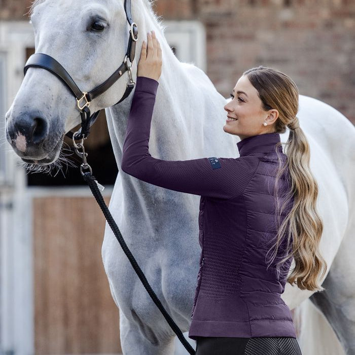 The Oregon Hybrid Quilted Jacket is a stylish and functional outerwear choice designed for sporty equestrians. Combining quilted design with innovative 3D knitted fabric, it provides comfort, warmth, and a tailored fit.