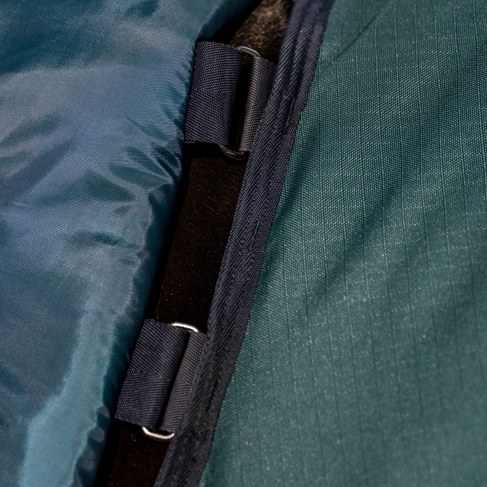This blanket comes with a detachable neck cover. Straight front closure with front leg arches for freedom of movement. The anti-static, anti-bacterial, shine enhancing Polyester lining prevents rubbing and promotes a healthy shiny coat. Liner loops offer optimum versatility.
