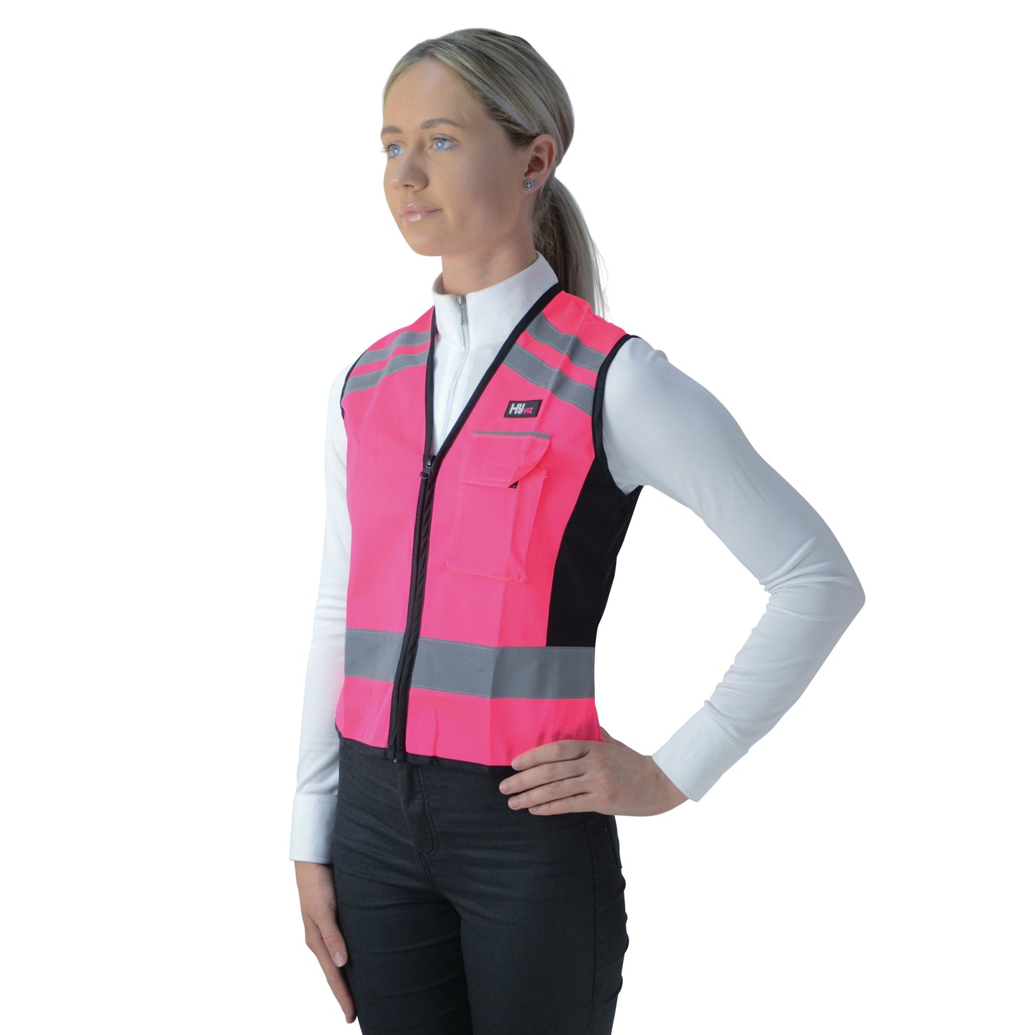 Stilvolle HyVIZ-Weste mit dem Aufdruck „PLEASE PASS WIDE & SLOW“ auf der Rückseite. CE-gekennzeichnet. Zertifiziert nach EN1150. Atmungsaktives Material mit YKK-Reißverschluss vorne und einer Tasche für Ihr Mobiltelefon. Eleganter Schnitt für eine schmeichelnde Passform. Fluoreszierend mit silbernem Reflexband für Stil und Sicherheit vorne und hinten. Sichtbarkeit das ganze Jahr über. Maschinenwaschbar bei 40 °C. 5 Größen – X Small Small Medium Large X Large. Erhältlich in Gelb/Schwarz oder Pink/Schwarz.