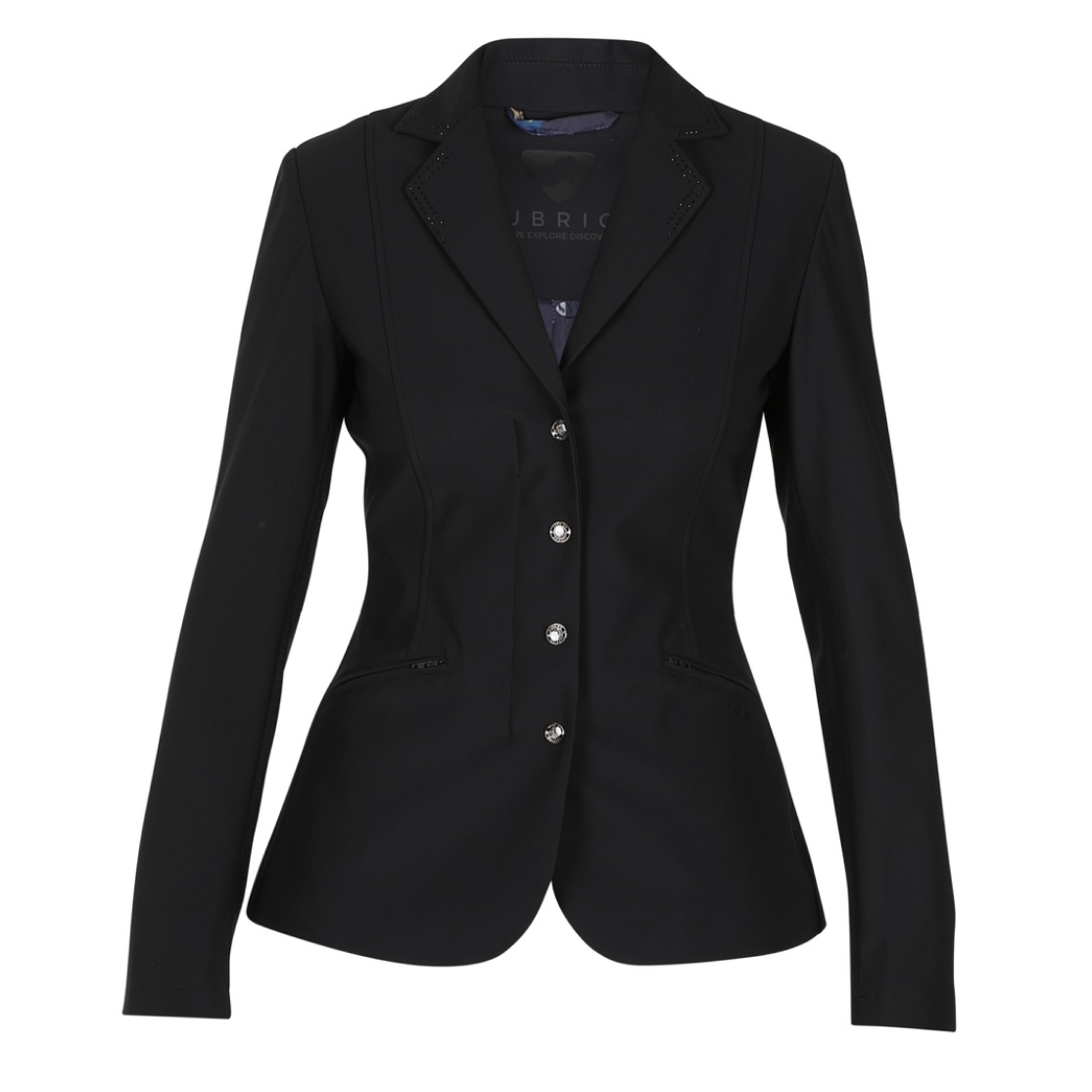 La veste de concours Shires Aubrion Ladies Wellington attire l'attention de tous et possède une coupe fine et active qui plaira à de nombreux cavaliers. Deux rangées de strass de couleur unie ornent le col et des boutons en émail scintillant gratuits figurent au centre du devant et aux poignets.