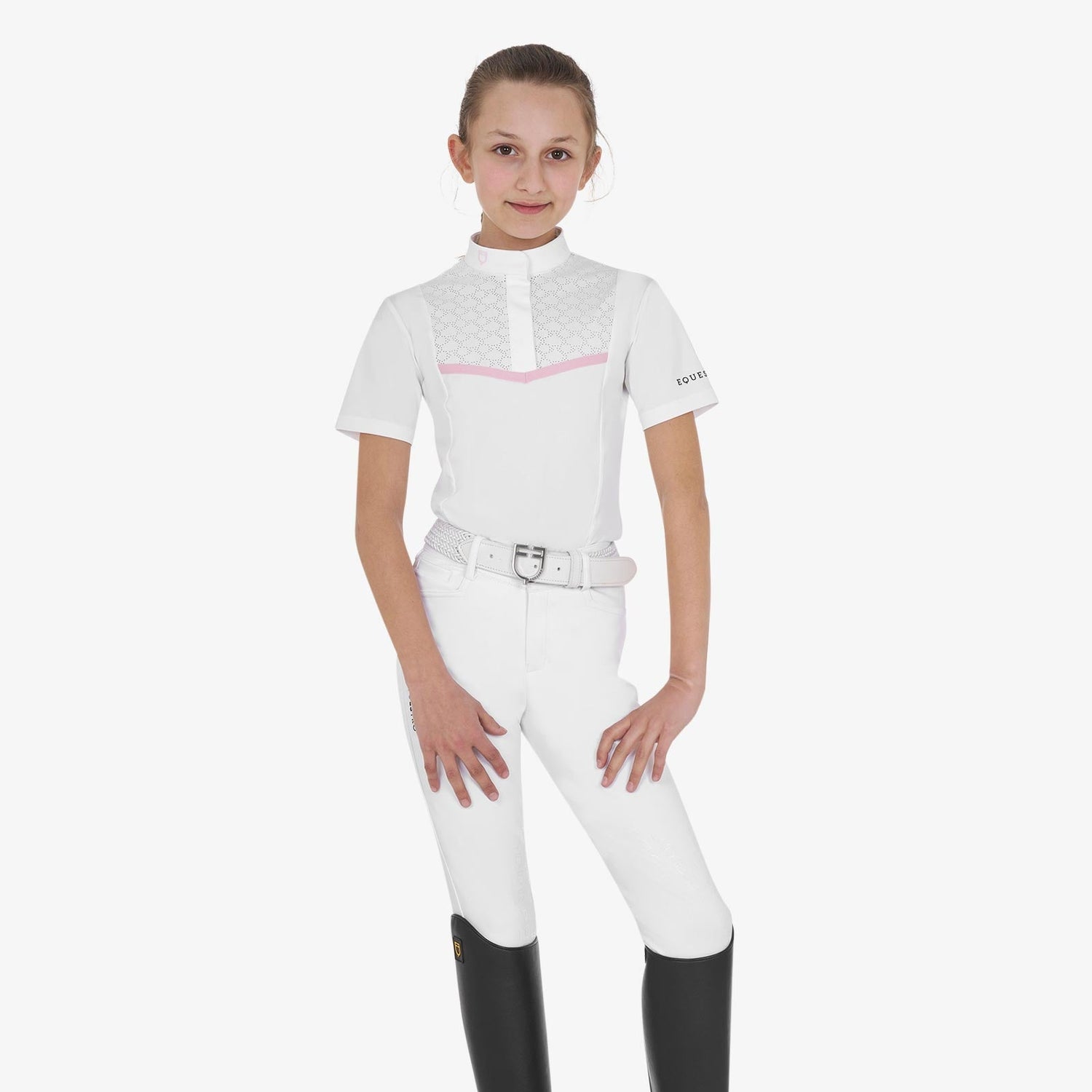 - Equestro logo graphics printed on the right side of the collar and on the left sleeve
