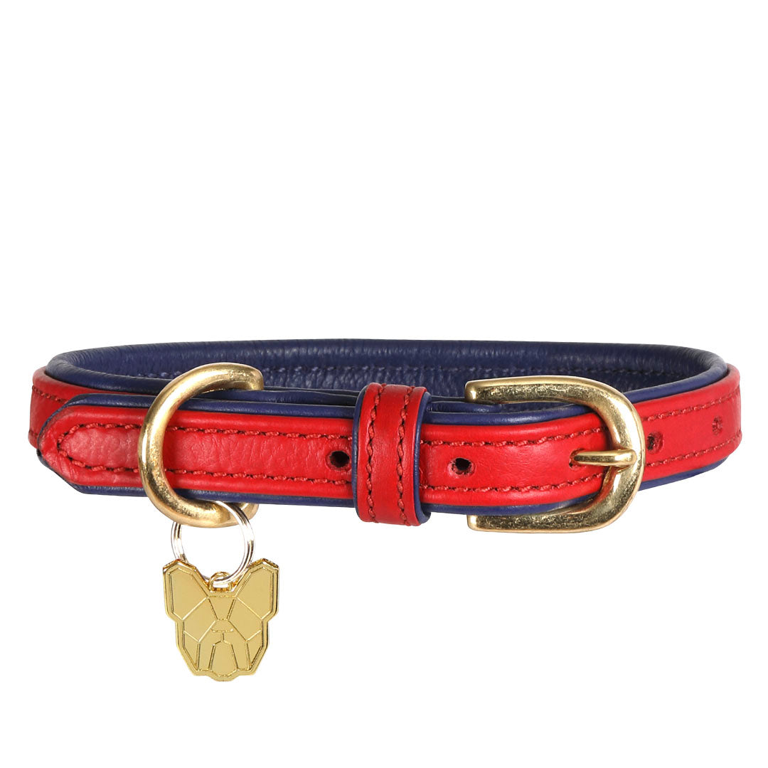 Une gamme colorée réalisée en cuir plié et doublée de cuir souple rembourré pour plus de confort. Le collier pour chien en cuir rembourré est doté d'une boucle et d'un anneau en D de couleur laiton ainsi que de l'étiquette Digby & Fox.