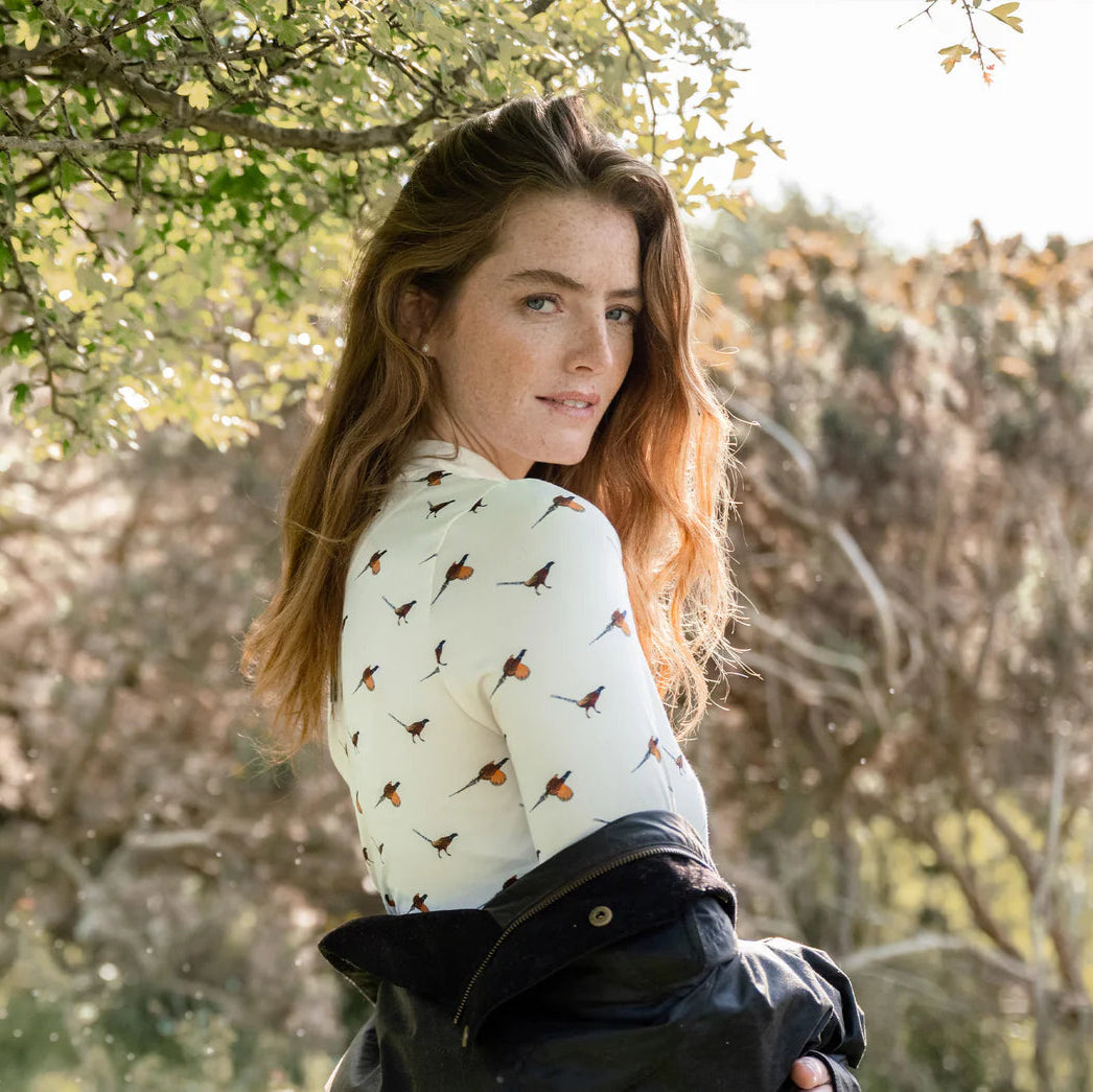 In a bespoke Dubarry print, this super soft, stretchy layer is a must for keen shots and countryside lovers. Lightweight and close fitting, with a mock neck, our Reynolds top will layer very comfortably and allows freedom of movement for active wear.