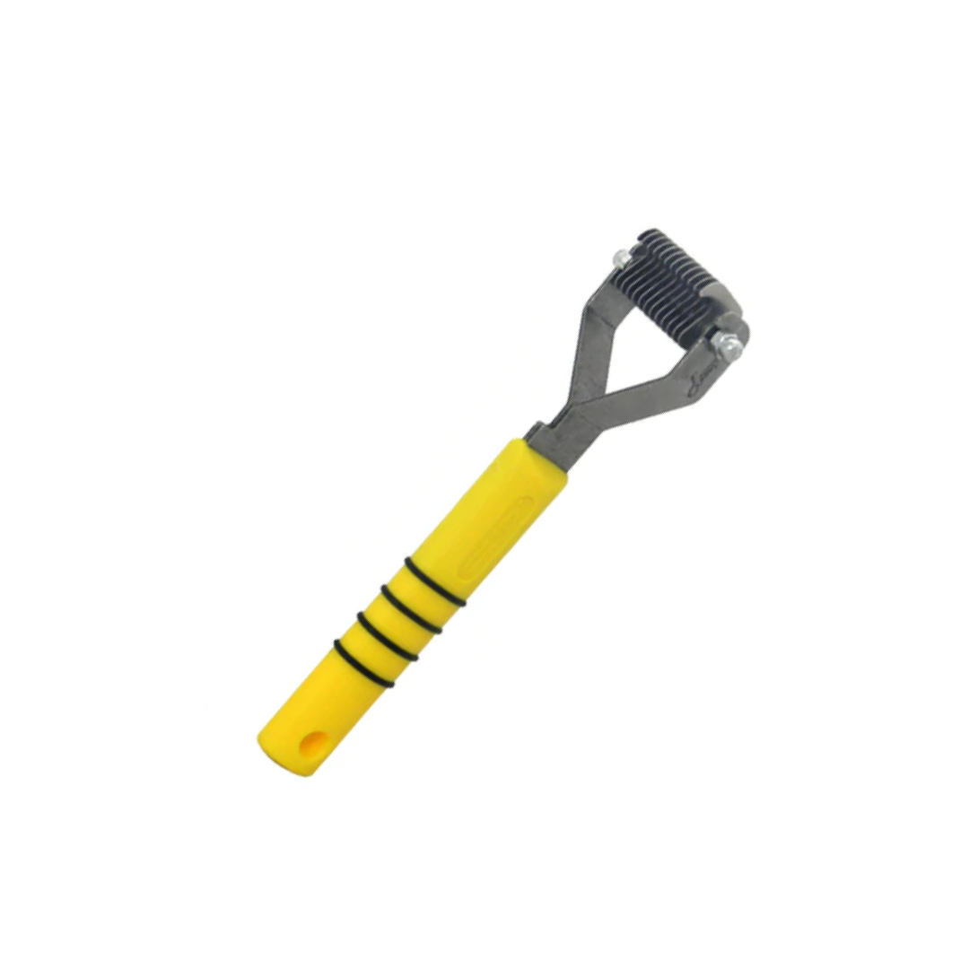 La gamme de poignées jaunes Smart Tails Easi-Grip vous donnera la finition du ring en quelques minutes sans aucune gêne pour votre cheval et sans danger pour vous également. Il faut des lames remplaçables ou interchangeables selon les besoins.